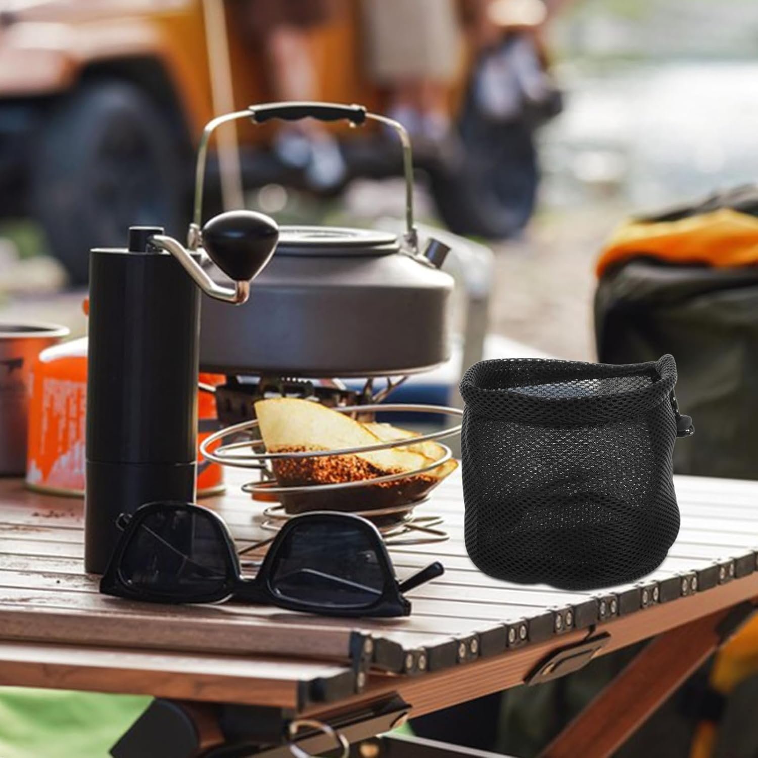 Ventilated mesh design: the breathable mesh construction promotes airflow, helping to keep your items dry and from,camping cooking pot,camping accessories