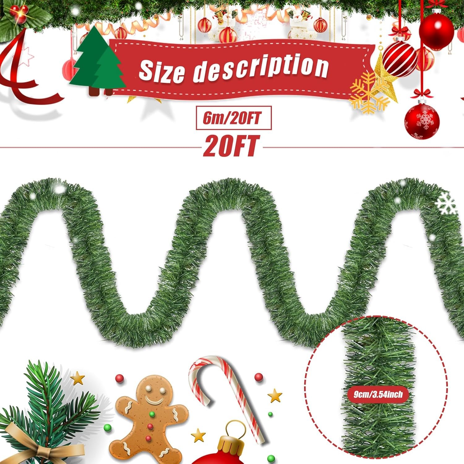 【A LENGTH OF LIMITLESS POSSIBILITIES】Boasting a generous 20-foot span, crafted from resilient plastic, our Christmas garland offers unparalleled versatility. Unlike fragile options, ours stands strong, ready to be deployed indoors or outdoors, fully utilizing every inch of its luxurious length.
