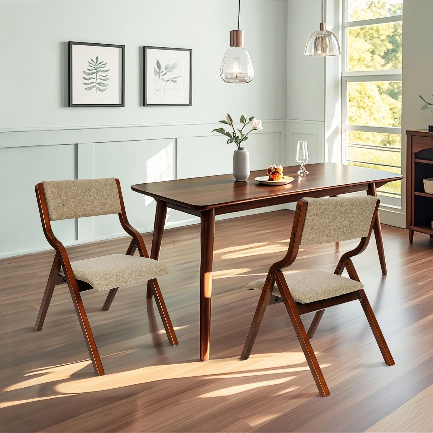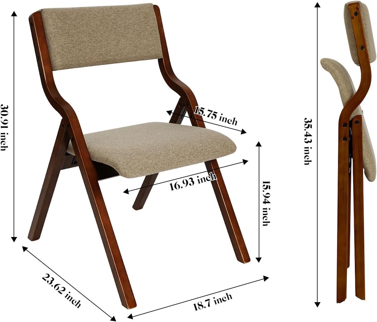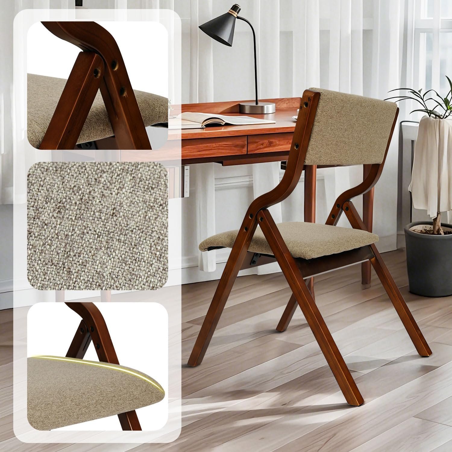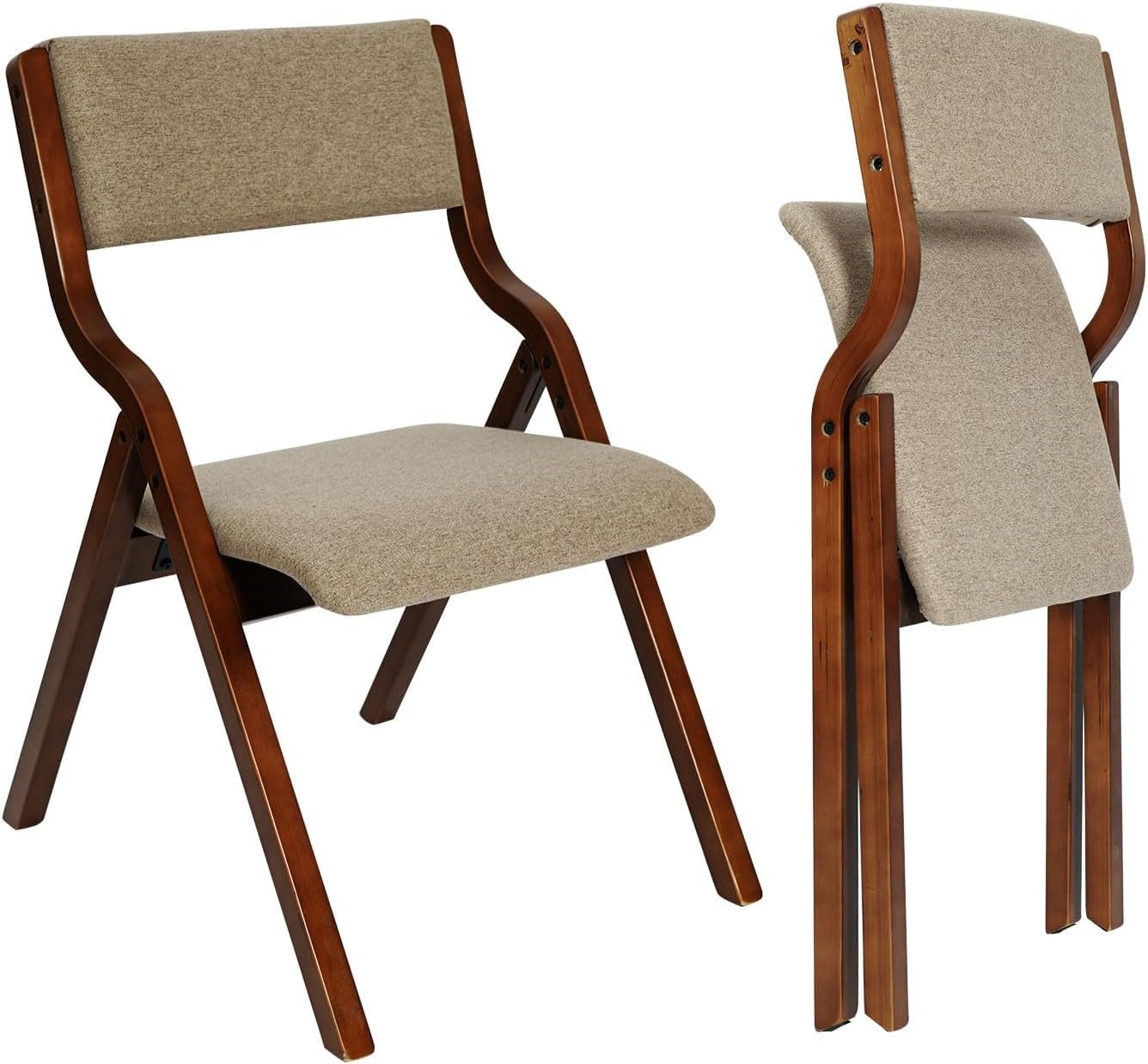 CangLong Padded Foldable Chairs Set of 2 with Solid Wood Frame, Stackable and Assembled Fabric Chair for Guests Kitchen Office Wedding and Party, Walnut+Light Coffee