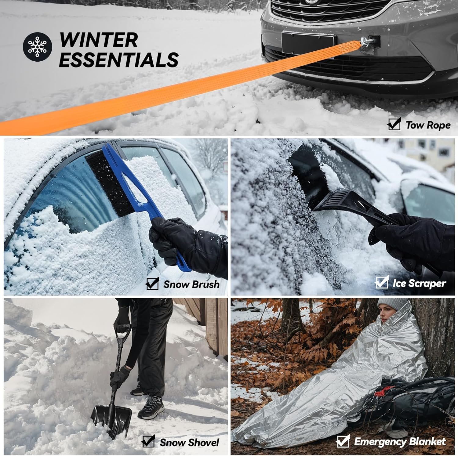 Winter Car Tools: Stay safe during winter travel with our detachable snow shovel and car snow brush, specifically designed to clear snow and ice from your vehicle quickly. Ideal for drivers in snowy regions who want peace of mind on wintry roads