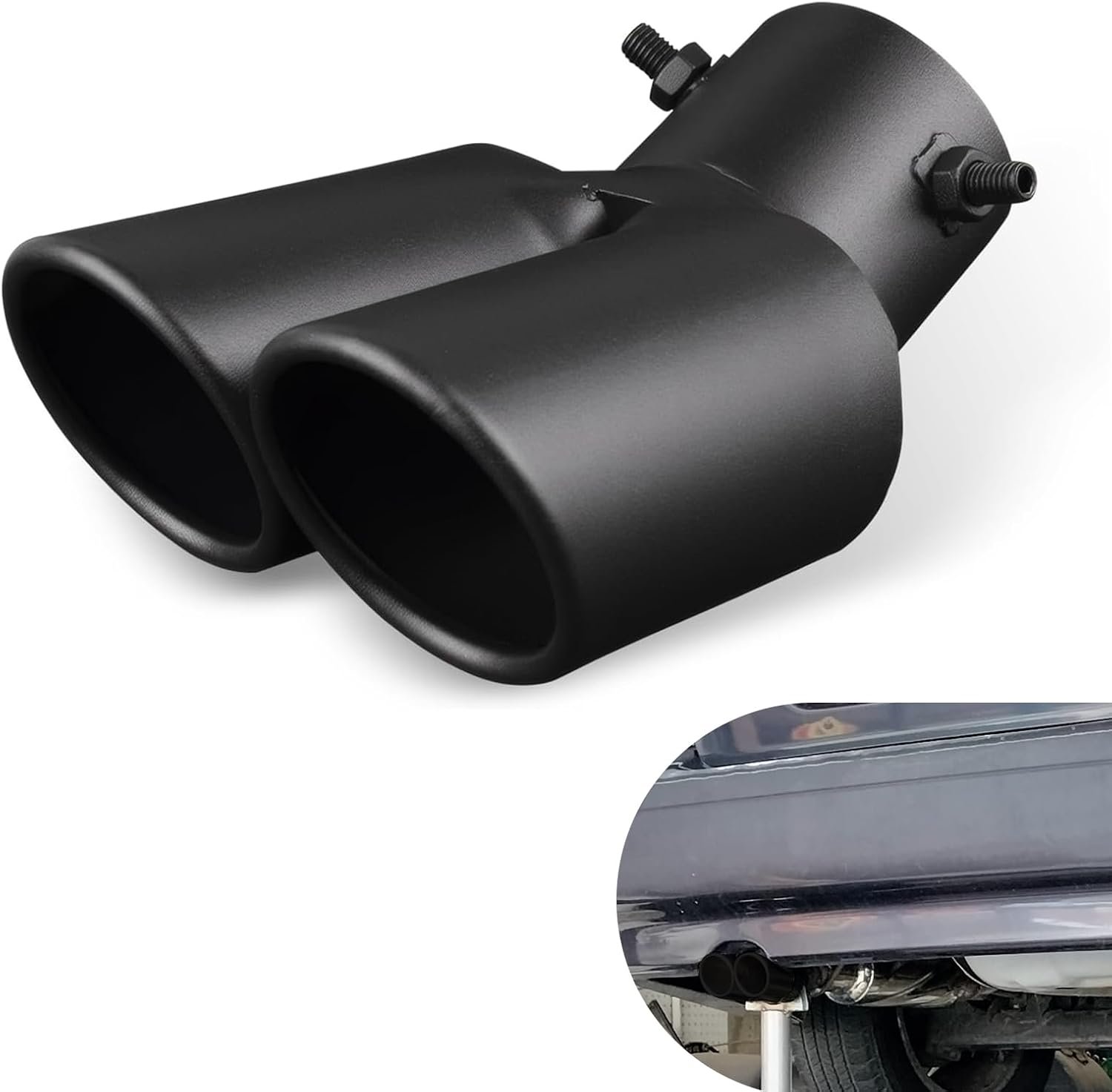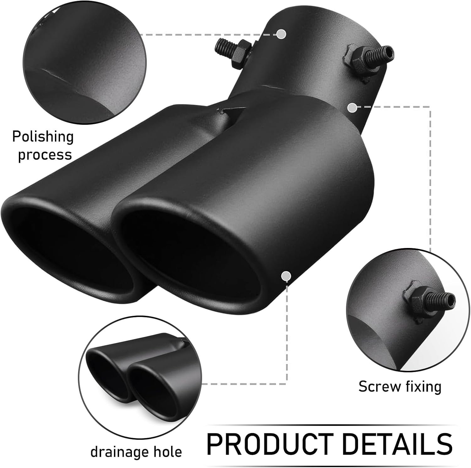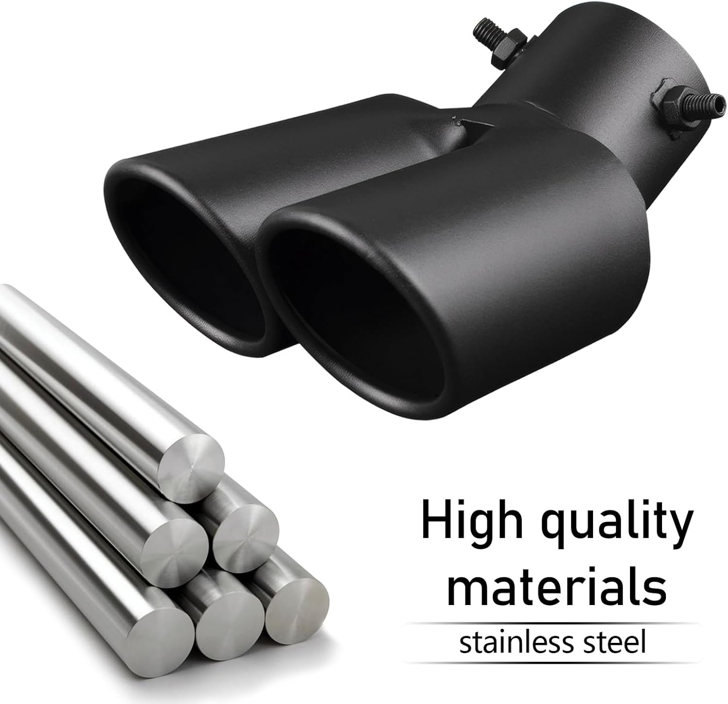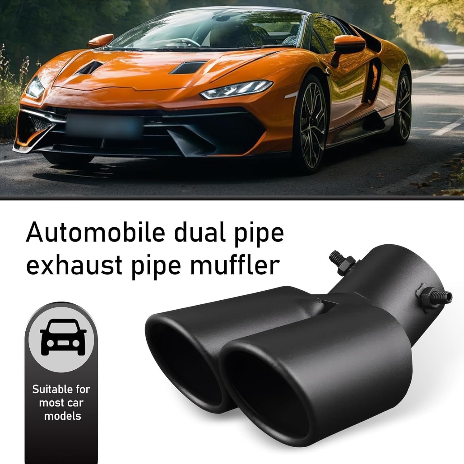 MOXRUQ Car Exhaust Tips, Dual Outlet Bending Muffler Exhaust, Stainless Steel High Temperature Resistant Tail Pipe Muffler Tip, Universal Car Exhaust Pipe Modification Accessories (Black)