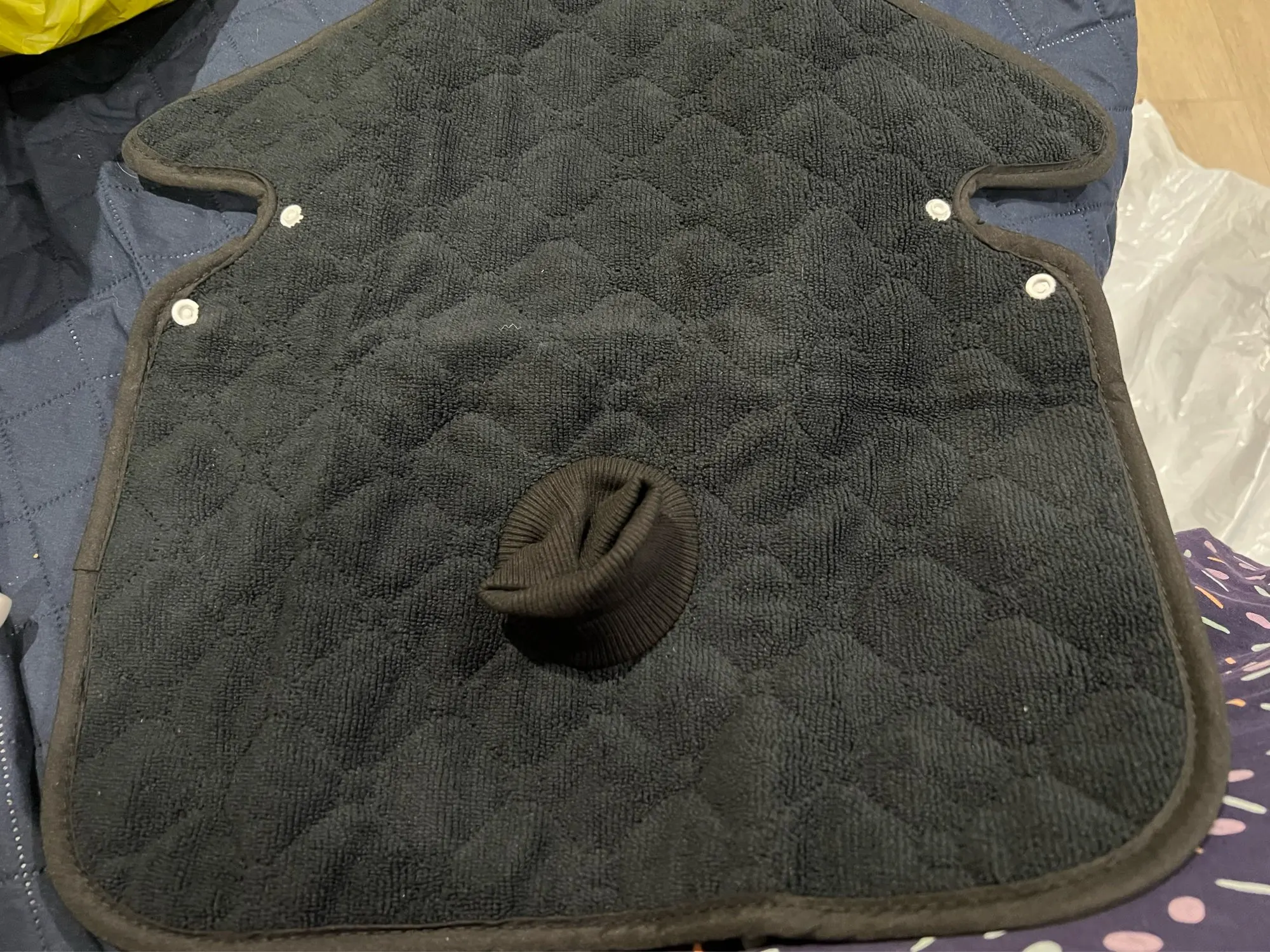 3、【Leak-Proof Button Hole】Baby Car Seat Liner is provided with leak-proof buttonhole protection. It has a soft upright seat belt guard that protects the crotch harness from moisture and contamination.