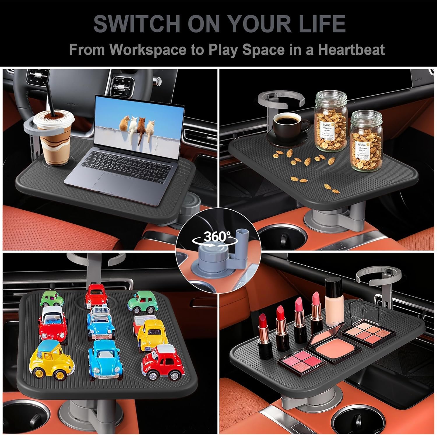 [Travel Essential] Upgrade your travel experience with a tray that handles everything from snacks to work essentials. Perfect for long drives, daily commutes, or family adventures.
