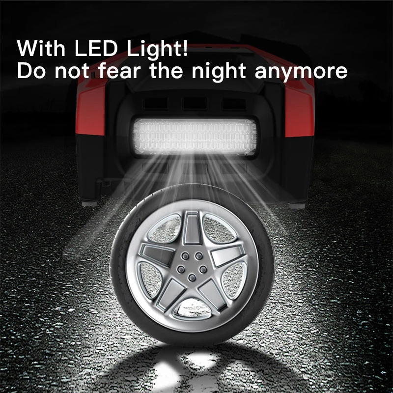 Function: Inflatable/pressure measurement/night lighting/preset tire pressure/automatic charging and stopping