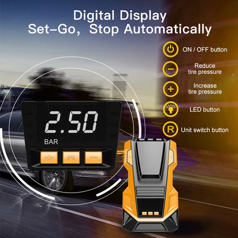 10 reviews for Car Tire Inflator Portable Air Compressor 150PSI Digital Air Pump AC220/110V DC12V With LED Light for Car Motorcycle Bicycle