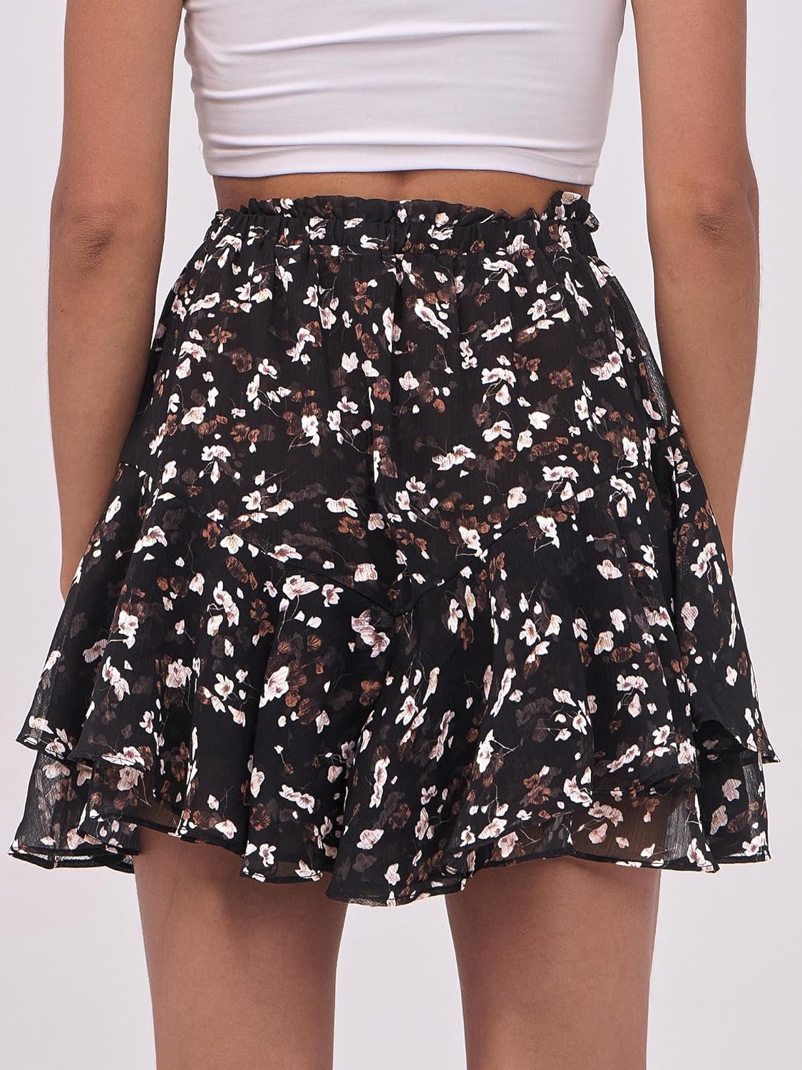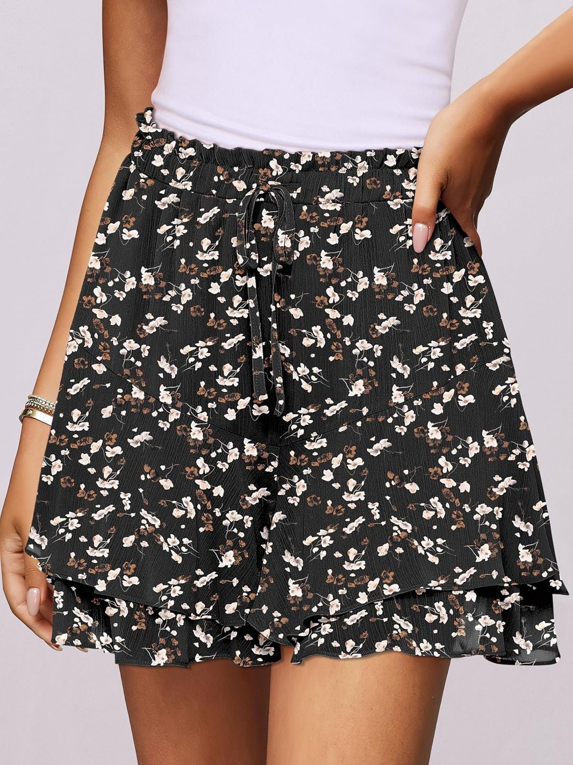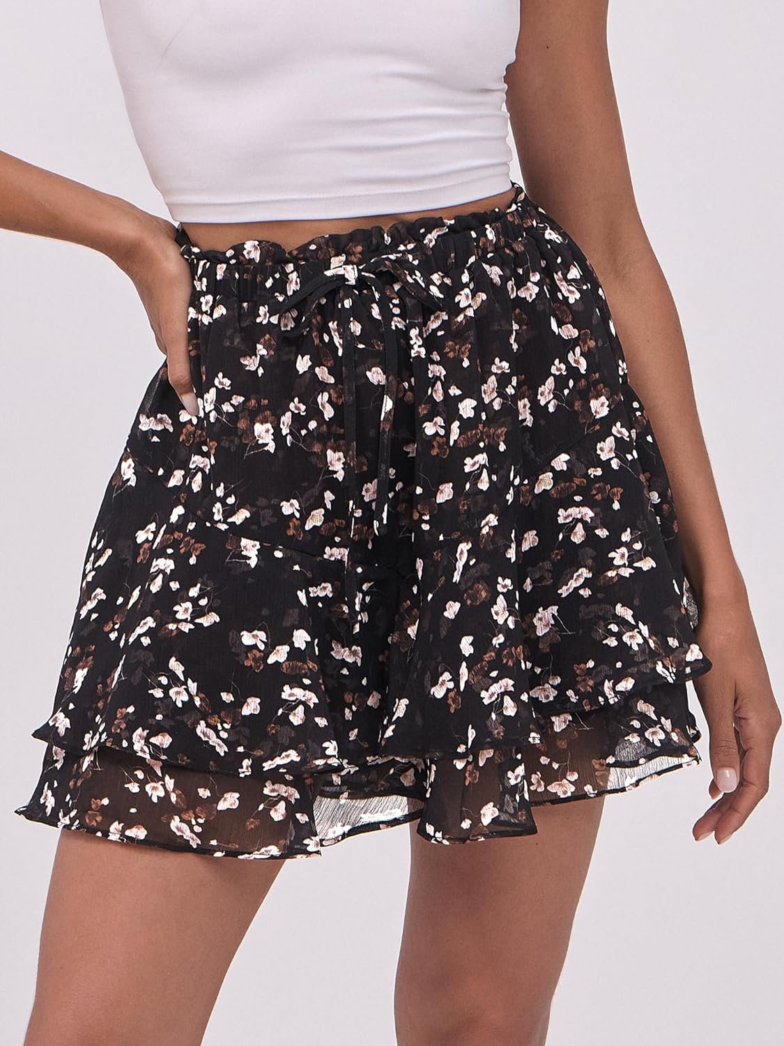 Caracilia Skorts for Women Boho Casual Beach Mini Skirts Summer Floral Ruffle Chiffon Flowy Shorts 2025 Trendy Outfits