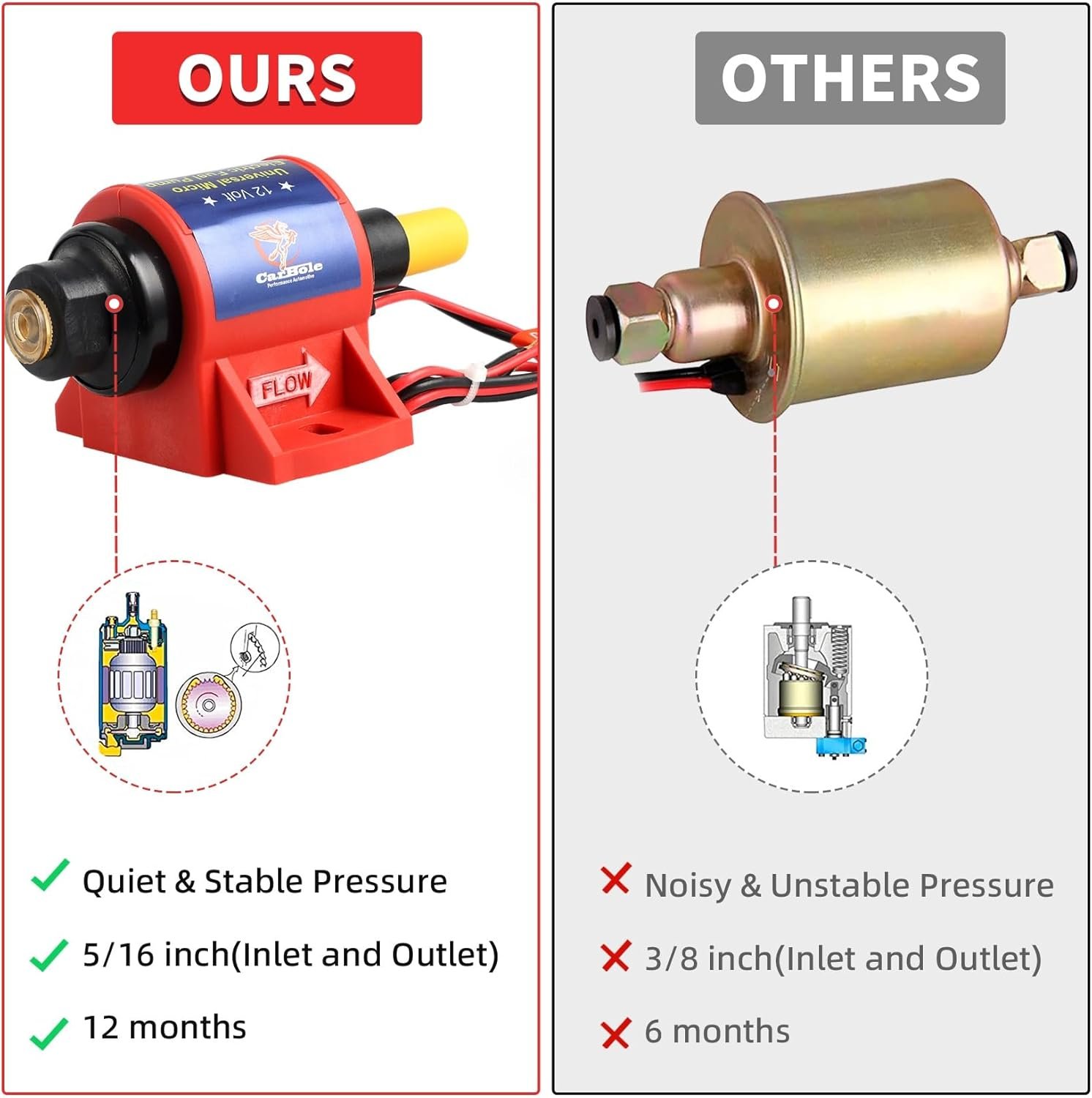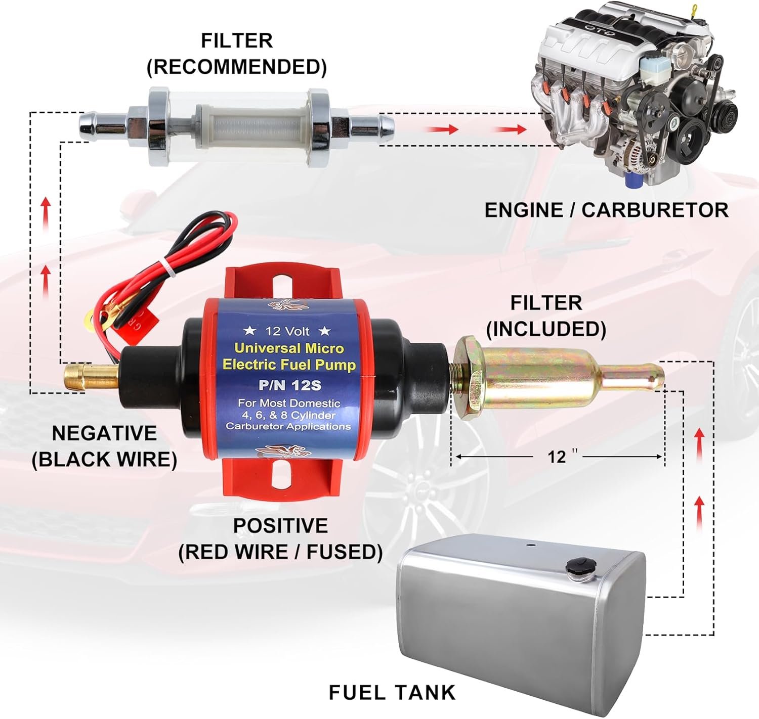 CarBole Micro Electric Gasoline Fuel Pump Universal 5/16 inch Inlet and Outlet 12V 1-2A 35GPH 4-7 P.S.I. Operating Fuel Pressure