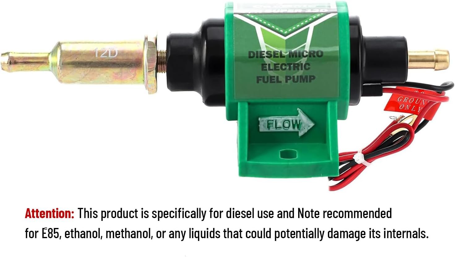Not for Fuel Injected Engines; This pump is for diesel-only; Don’t try it with E85, ethanol, methanol, or any harsh liquid as they will damage the internal parts
