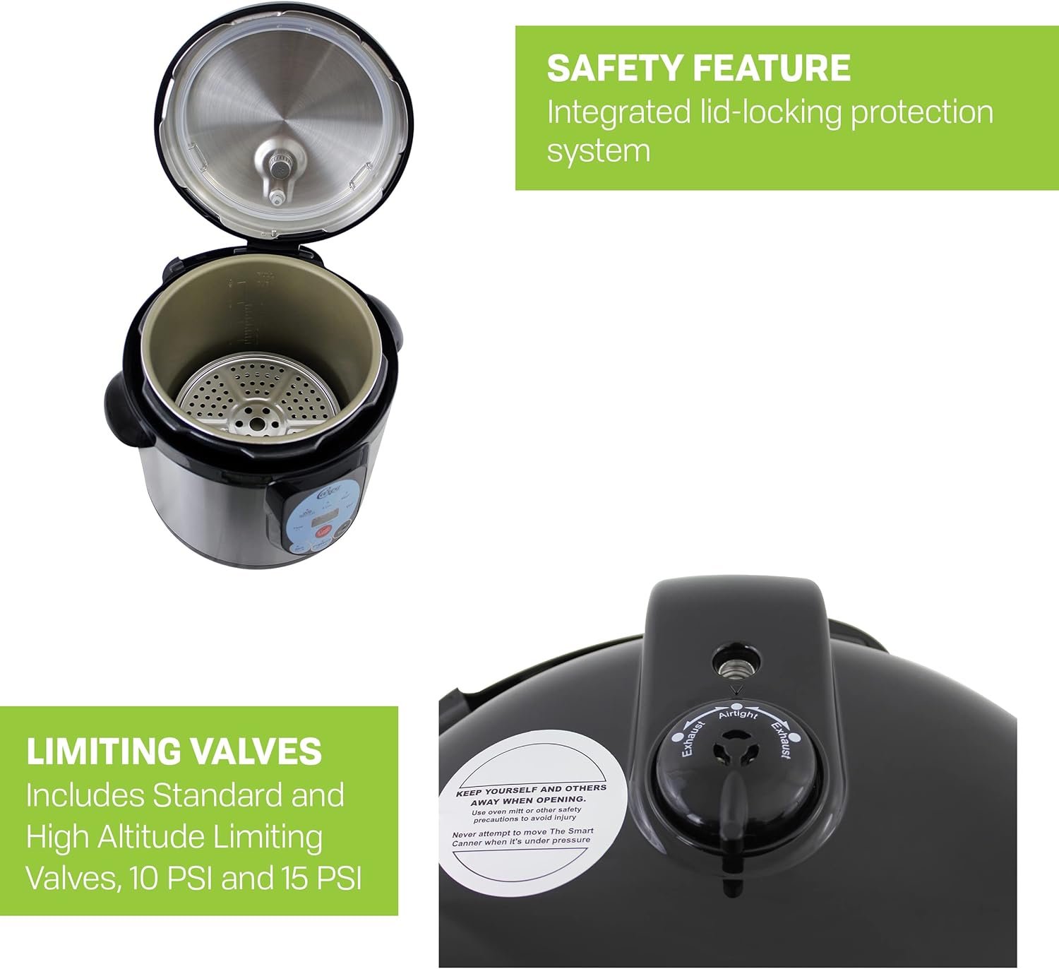 DIGITAL DISPLAY: The multi-functional digital display features a timer and preset programs to give you the right tools to ensure consistent results when canning fruits, jams, pickles, salsas and more