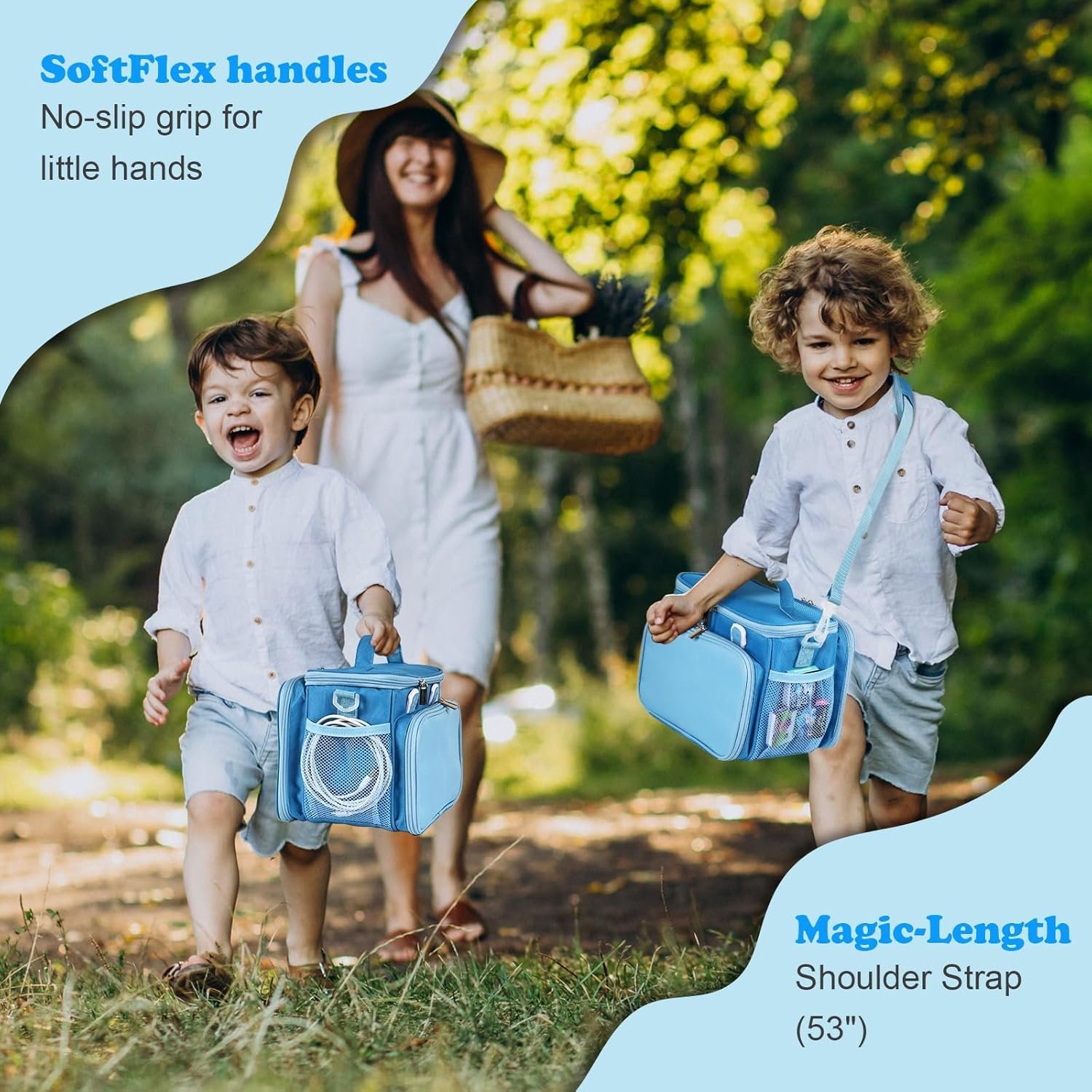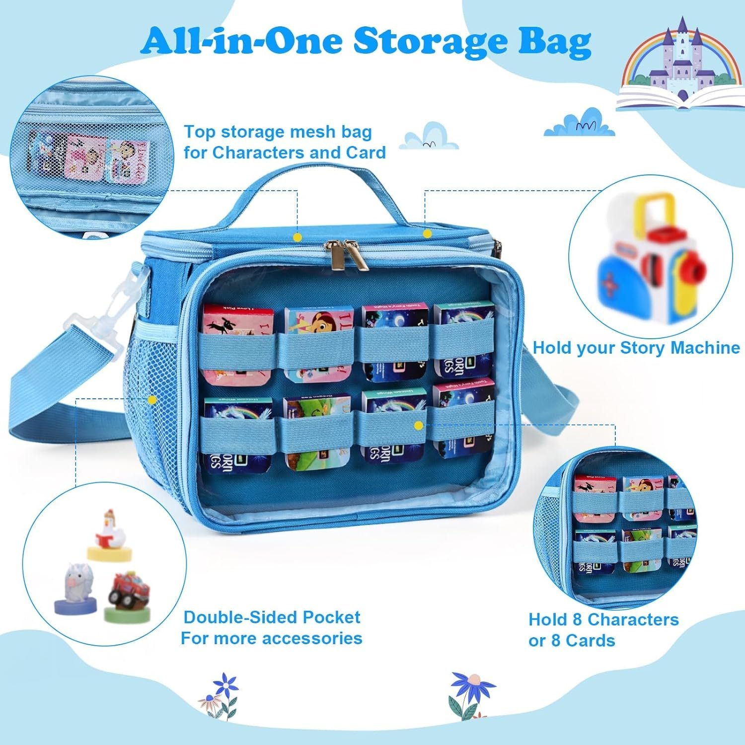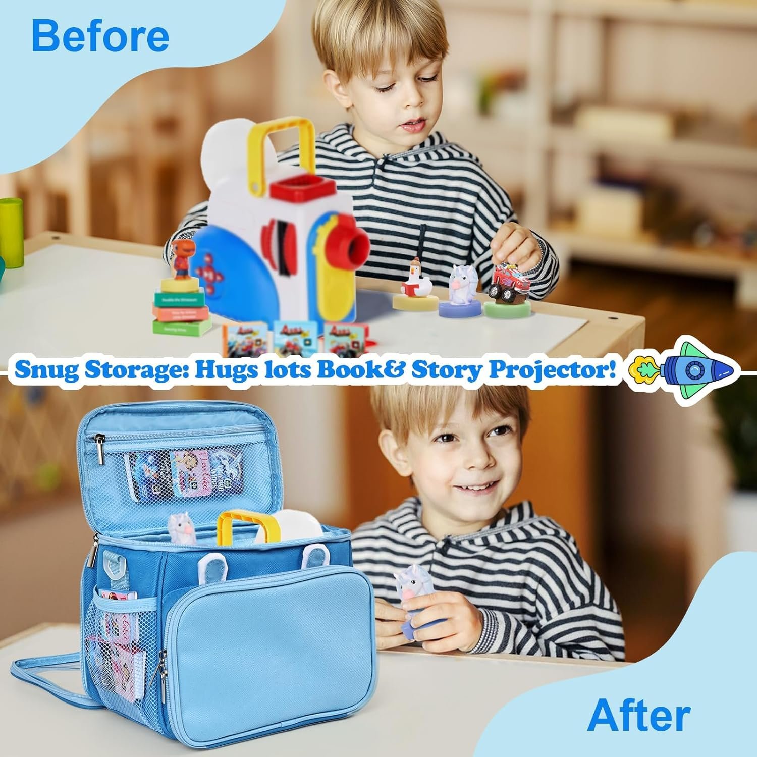 Portable Carry Case for Story Projector: Easy to Carry: this carry case Features a handle and shoulder strap for convenient carrying options, Creating a convenient way for children to transport their for Story Dream Machine Set for backyard quests, road trips, or camping fun. Dual zipper opening for quick access and a cute Blue colors matching little Boy outdoor needs.