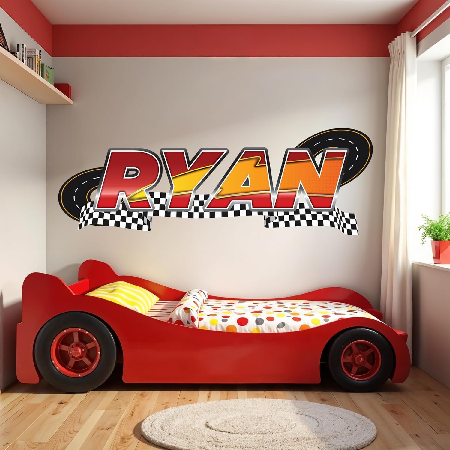 Transform your child’s room into a thrilling race car haven with AdesiivoStudio’s Cars Custom Name Wall Decal for Kids Bedroom. Our personalized vinyl stickers are designed to bring the vibrant world of Disney Pixar’s beloved cars right into your home. Crafted from high-quality materials, these custom name stickers are perfect for adding a unique and personal touch to any boy’s room decor. Whether you’re looking to enhance a playroom wall decor or achieve the perfect car room decor for boys, our decals promise to deliver an immersive experience. Each custom name sticker is tailored to feature your child’s name, seamlessly integrating into the race car bedroom decor for boys. These name decals for walls are not only visually striking but also durable, ensuring long-lasting enjoyment. The vivid colors and detailed designs make them an ideal choice for cars decor for boys room or even as a standout piece in a cars toddler bedding set. Our custom car decals are more than just wall art bedroom pieces. They are a gateway to imagination and excitement, capturing the essence of cars wall decor and turning any space into a dynamic environment. From custom vinyl stickers that showcase your child’s favorite characters to personalized wall decals that make their name the centerpiece, AdesiivoStudio’s range of cars wall decals is unmatched in quality and creativity. Perfect for enhancing boy room decor or as an addition to cars bedroom decor, these decals serve as both functional and decorative pieces. The custom vinyl decal is easy to apply and remove, making it a convenient option for parents seeking versatile boy wall decor solutions. Our custom wall decal options are specifically designed to cater to the young enthusiast’s love for speed and adventure. Explore the magic of cars movie stickers and race car stickers for kids, and let AdesiivoStudio help you create a personalized retreat with our custom name decal offerings. Elevate your child’s space with race car decor for boys room that not only captivates but also inspires, making their room a perfect blend of fun and function. Choose AdesiivoStudio for your custom wall decals and experience the joy of transformation with every sticker.
