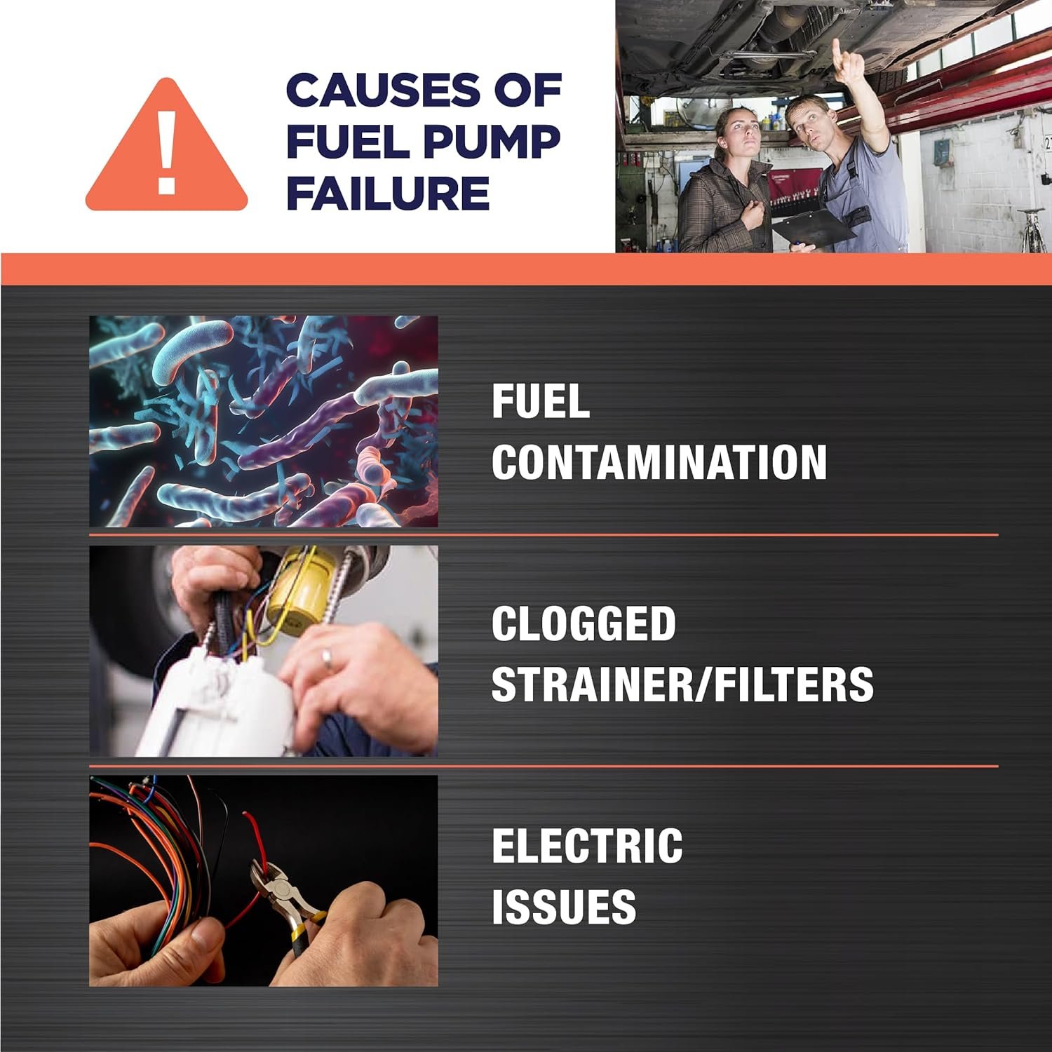 WHAT’S INCLUDED:For a proper installation, Carter Electric in tank fuel pump comes with the following components: fuel pump, strainer, wire harnesses, tank seal, and grommets.
