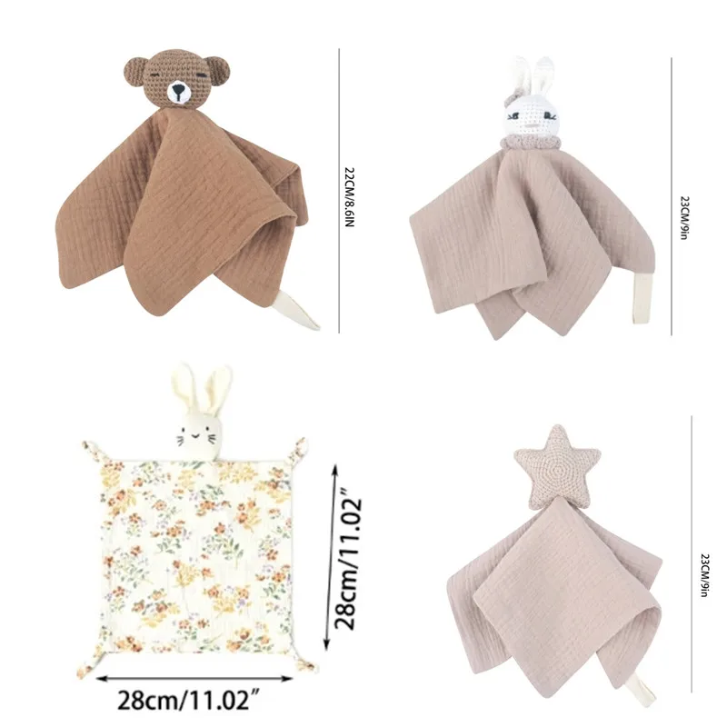 cartoon Animal Baby Cotton Muslin Comforter Blanket Soft Newborn Sleeping Dolls Kids Fashion Sleep Toy Soothe Appease Towel Bibs