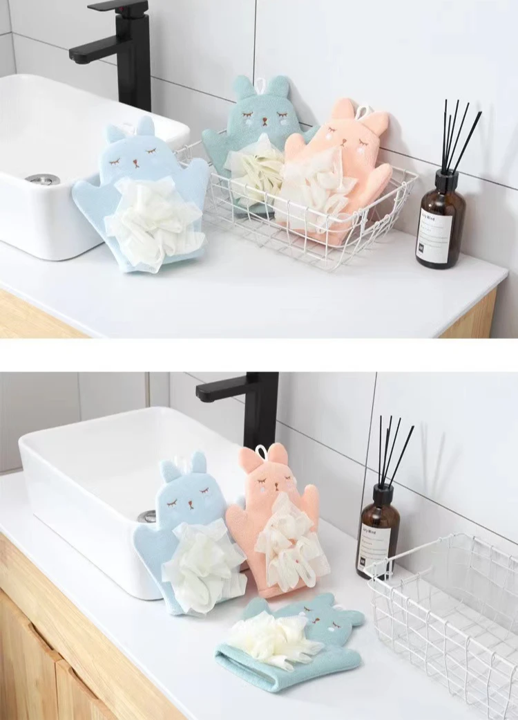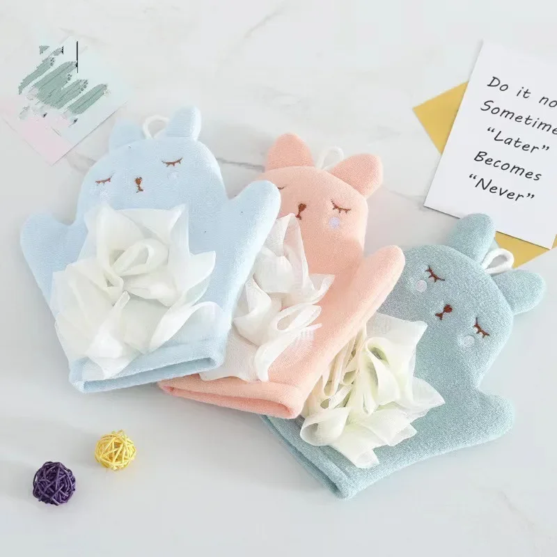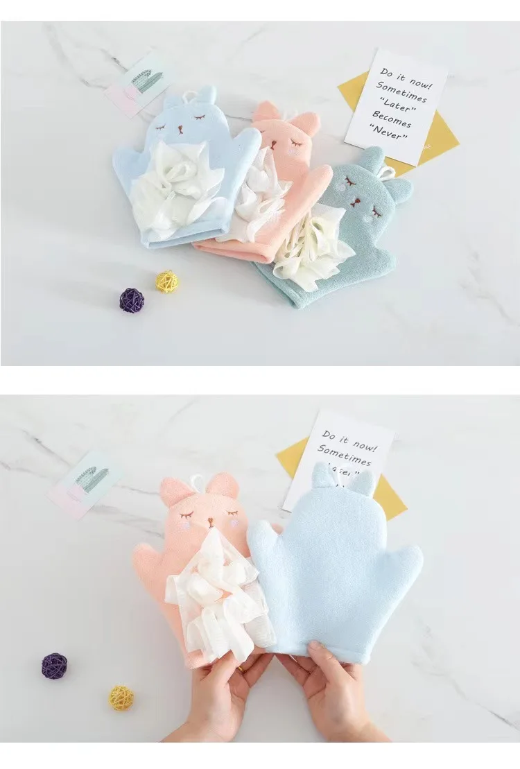 Cartoon Baby-Bath Gloves Cotton Bath Towel for Children Kids Cute Animal Bath-Brushes Comfortable Shower Sponge Bath Accessories