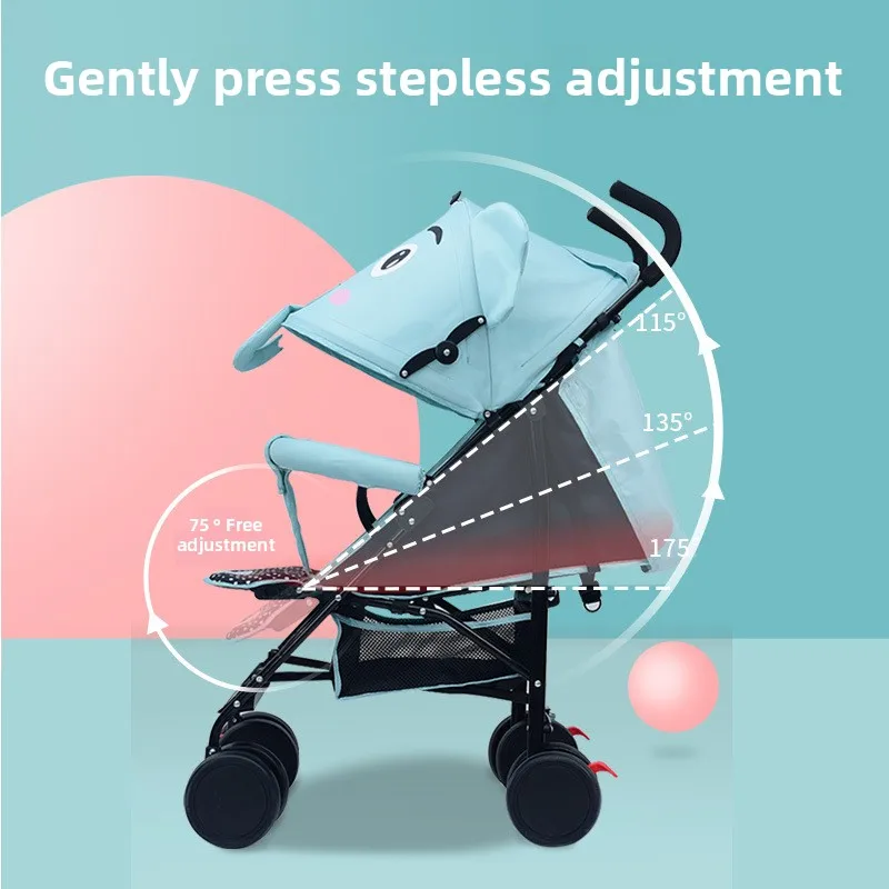 Cartoon Elephant Stroller Adjustable Baby Stroller for All Seasons, Can Sit or Lie Down Safe and Portable