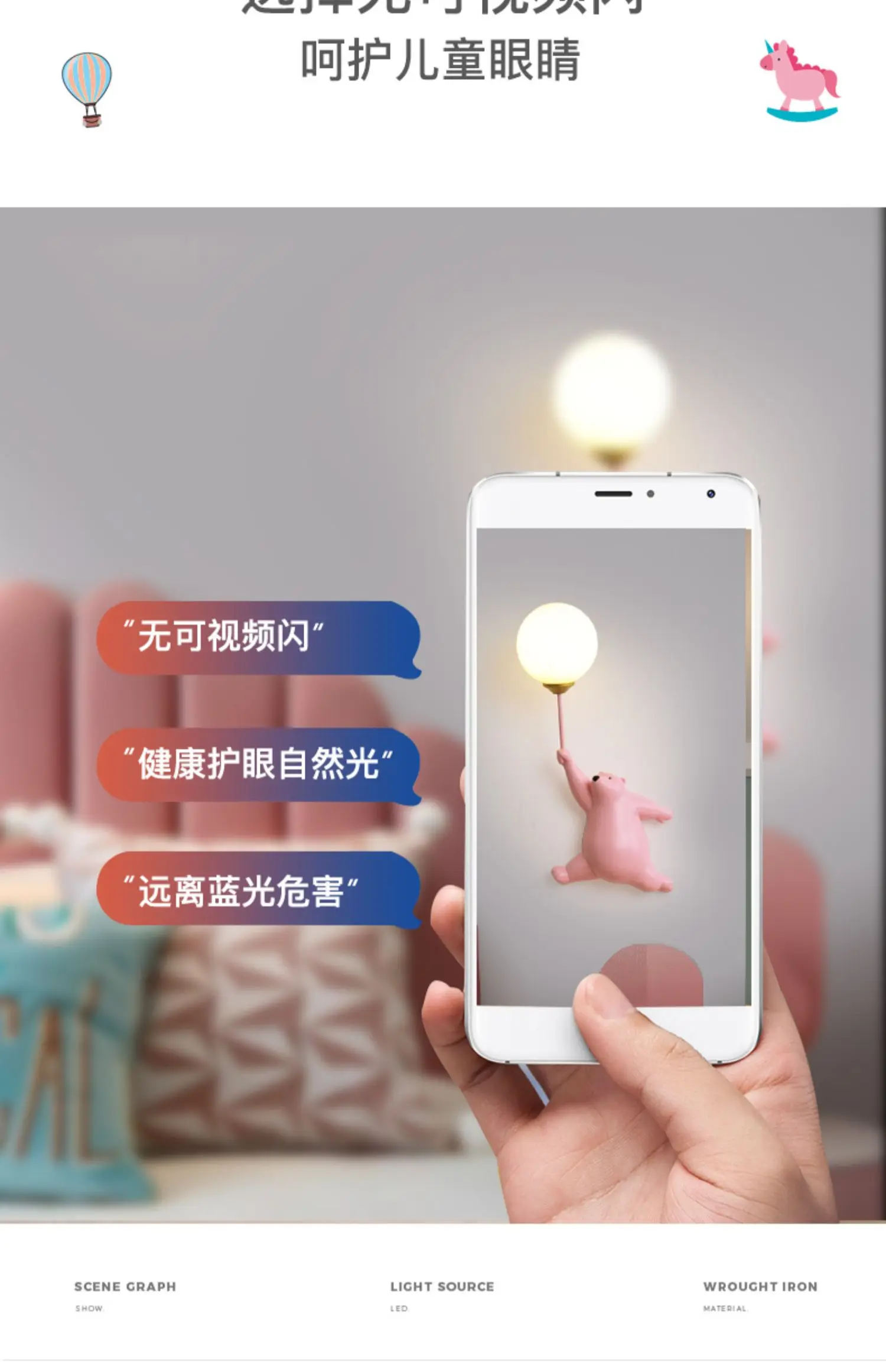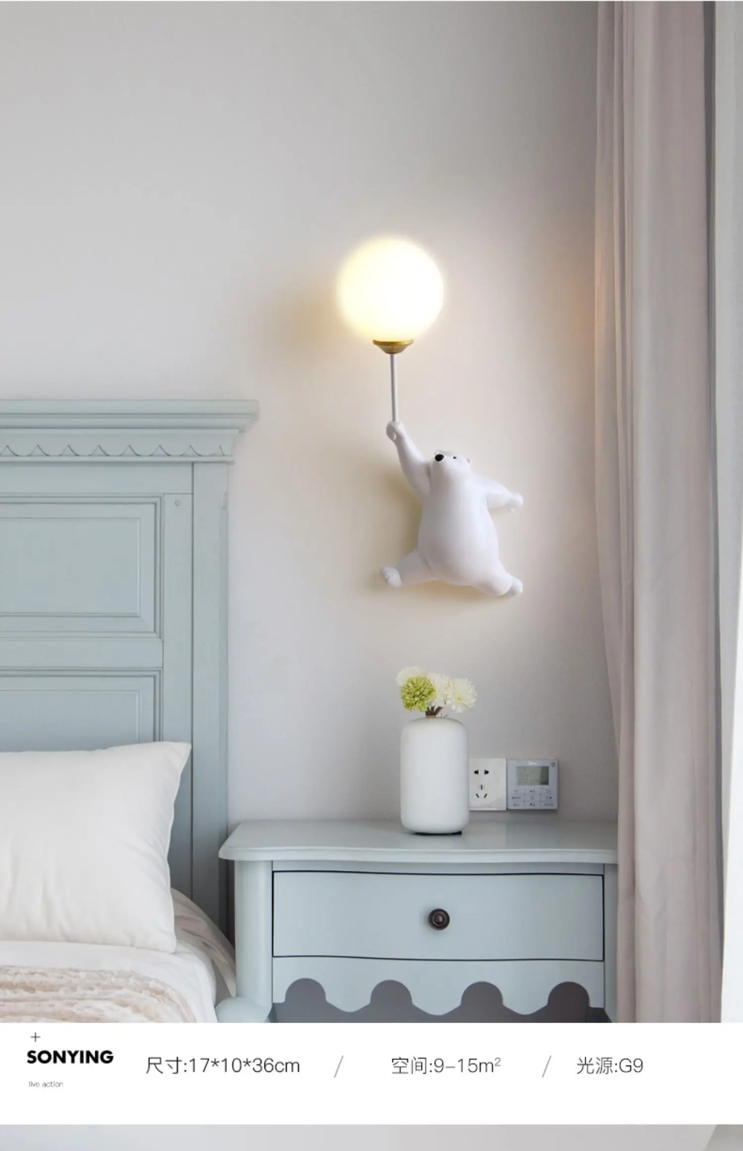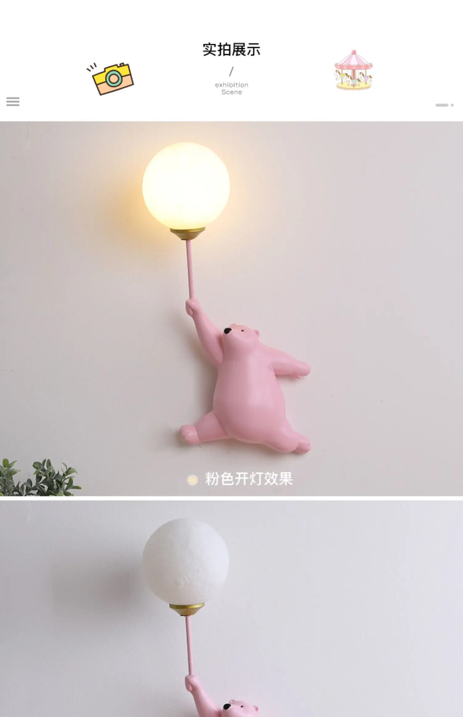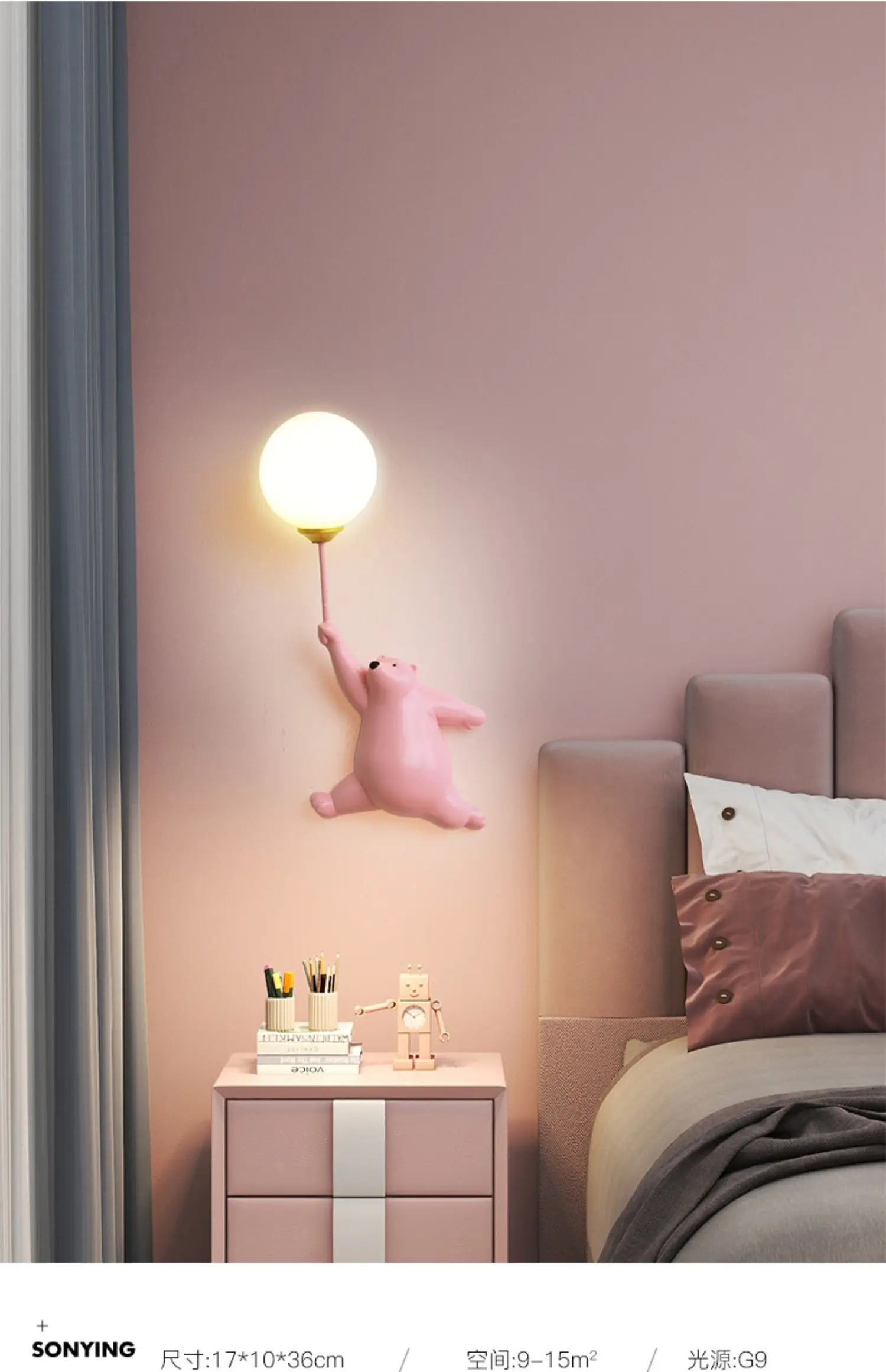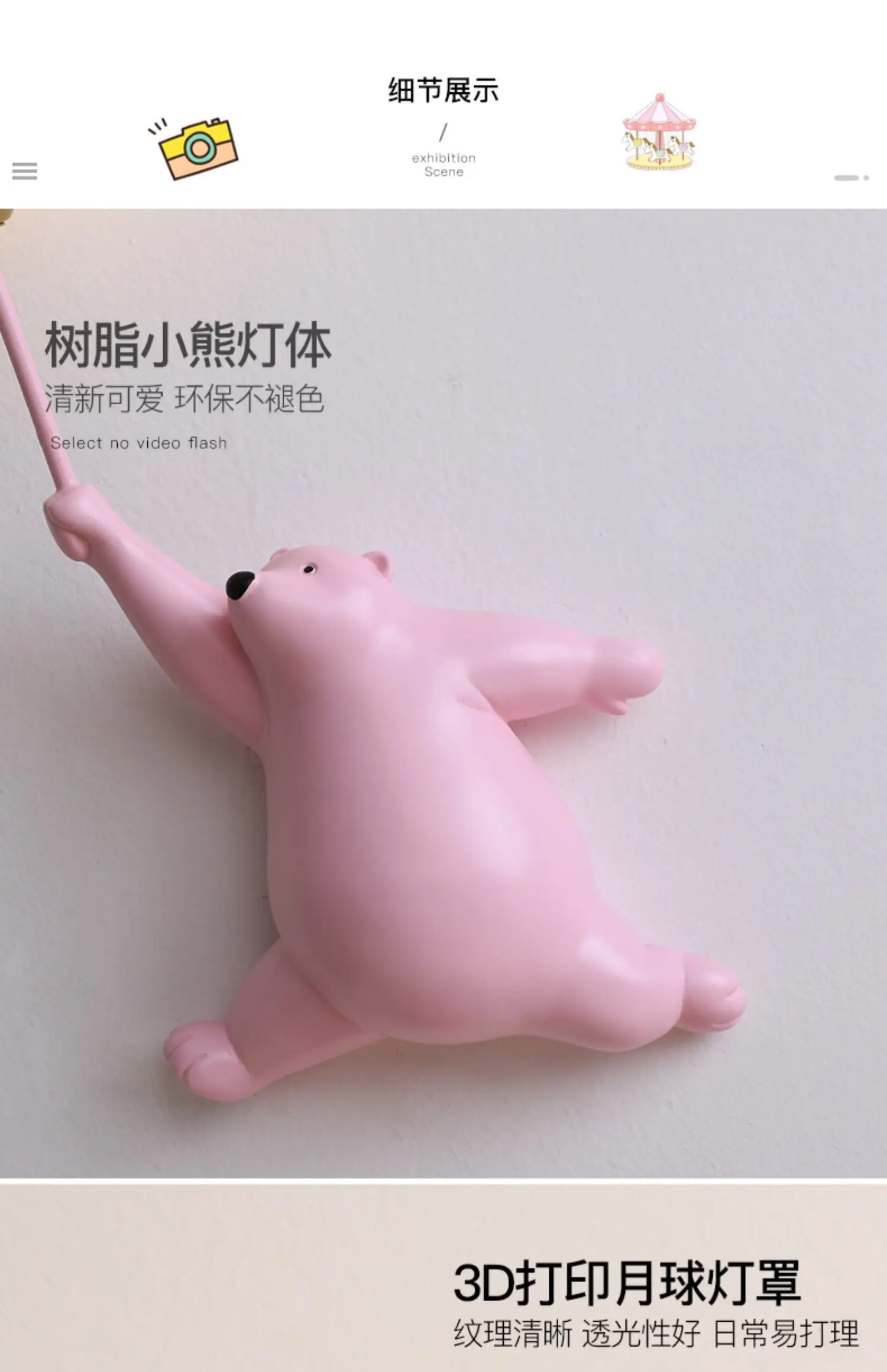 2 reviews for Cartoon led Bear Wall Lamp for Shildren Kids Baby Girl Bedroom Bedside Wall Light With 3D Printing Moon Decor Lighting FixtureS