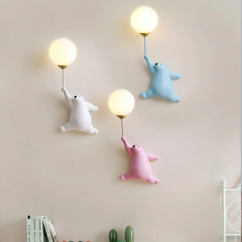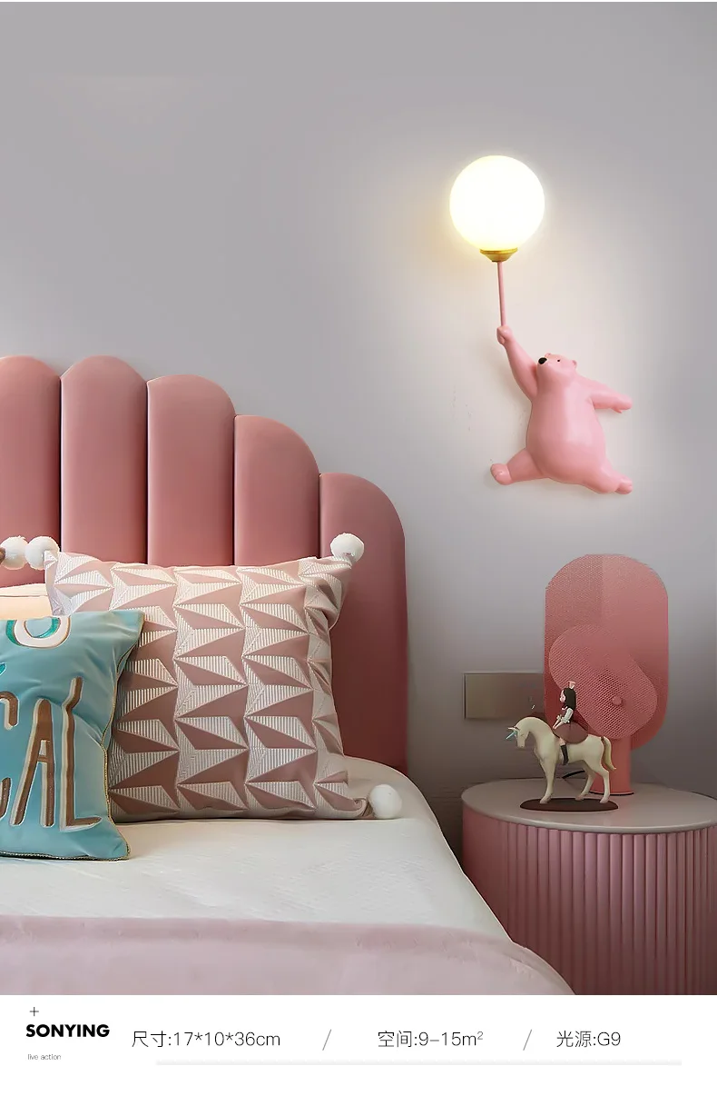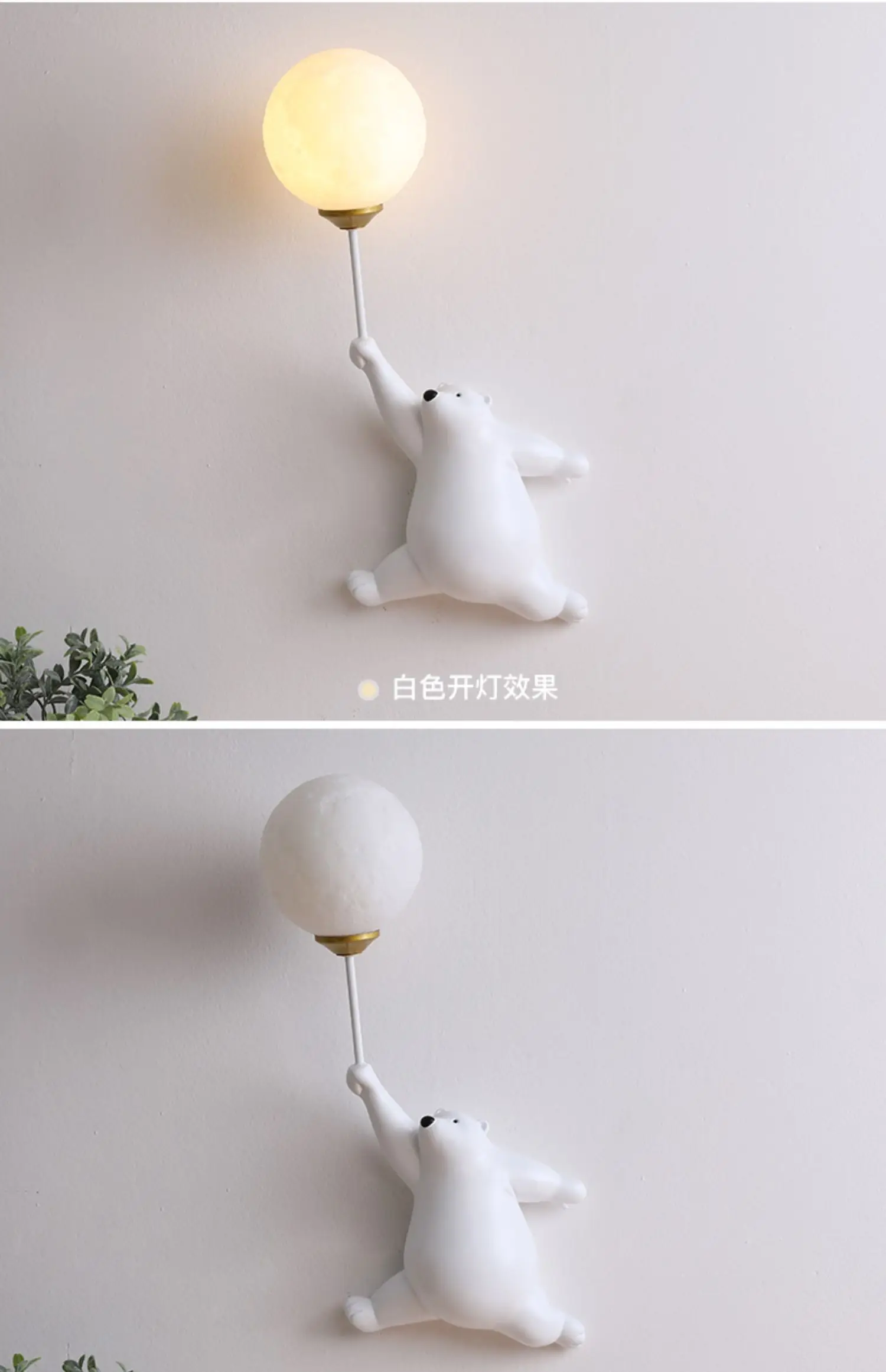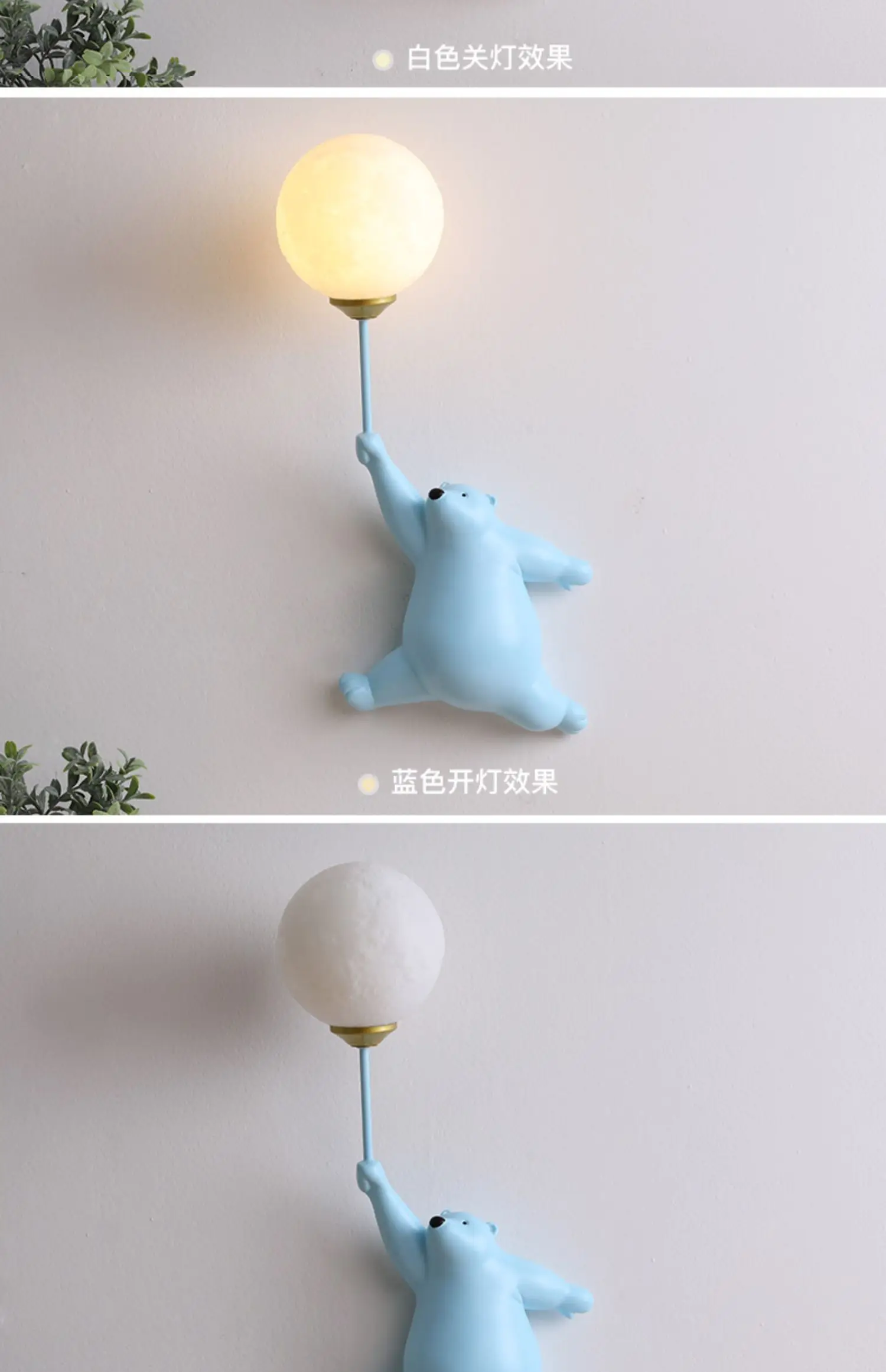 Cartoon led Bear Wall Lamp for Shildren Kids Baby Girl Bedroom Bedside Wall Light With 3D Printing Moon Decor Lighting FixtureS