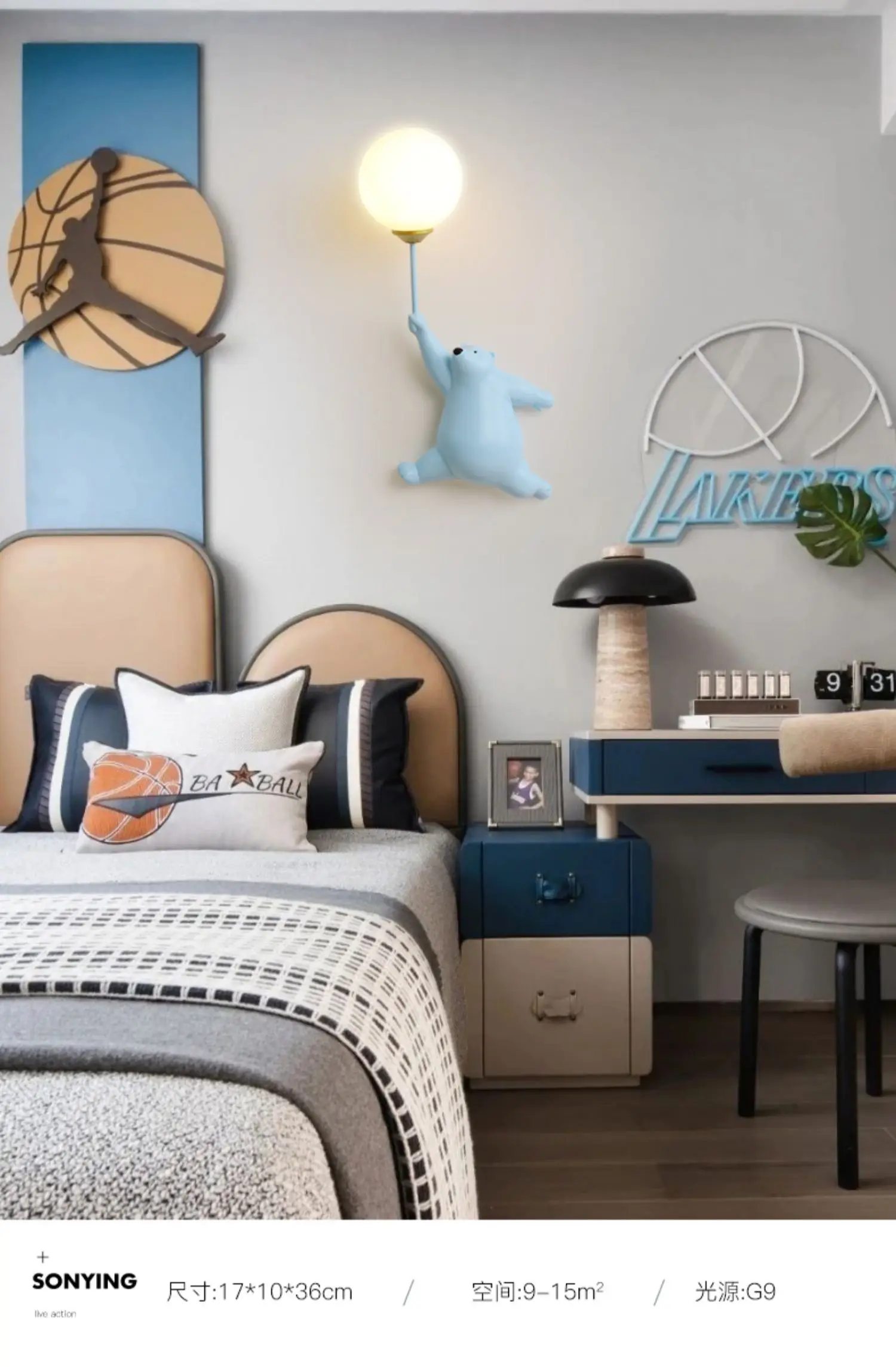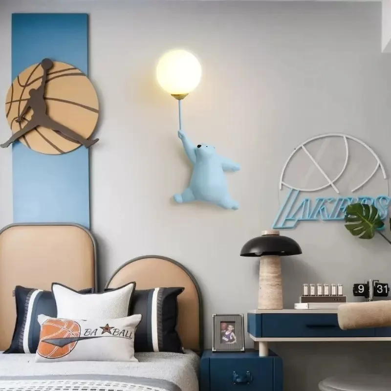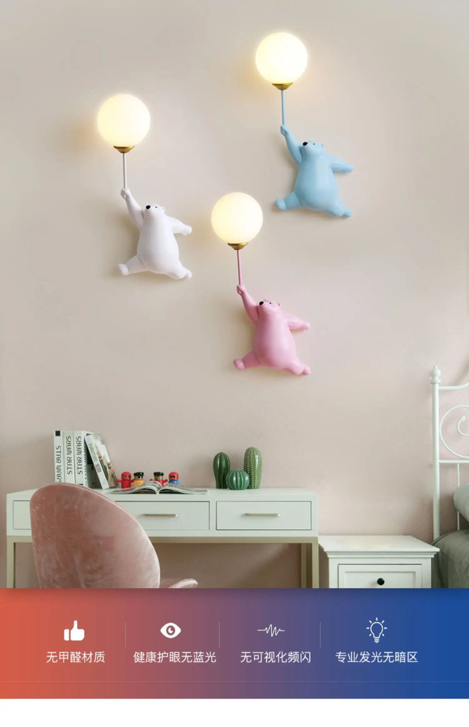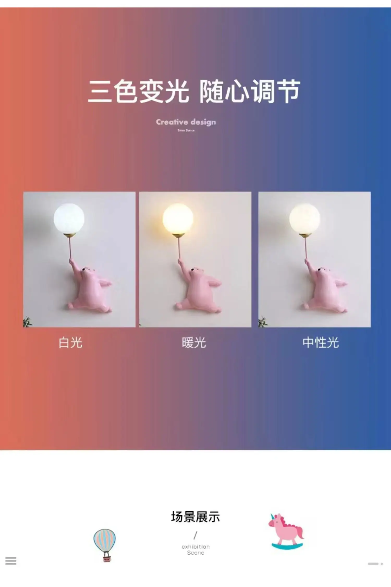 Cartoon led Bear Wall Lamp for Shildren Kids Baby Girl Bedroom Bedside Wall Light With 3D Printing Moon Decor Lighting FixtureS