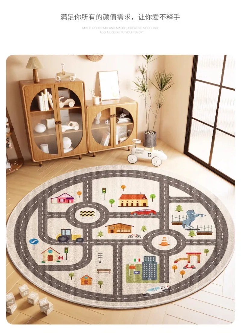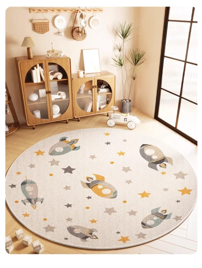 Cartoon Style Rugs for Bedroom Washable Living Room Decoration Round Carpet Anti-slip Children’s Room Floor Mat Soft Bedside Rug