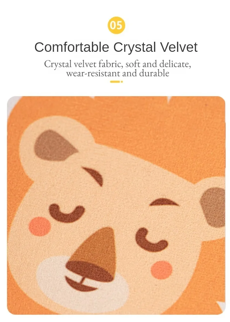 The cartoon pattern looks very good. I like the carpet material very much. Waterproof and non-slip convenient for maintenance. Fine workmanship.