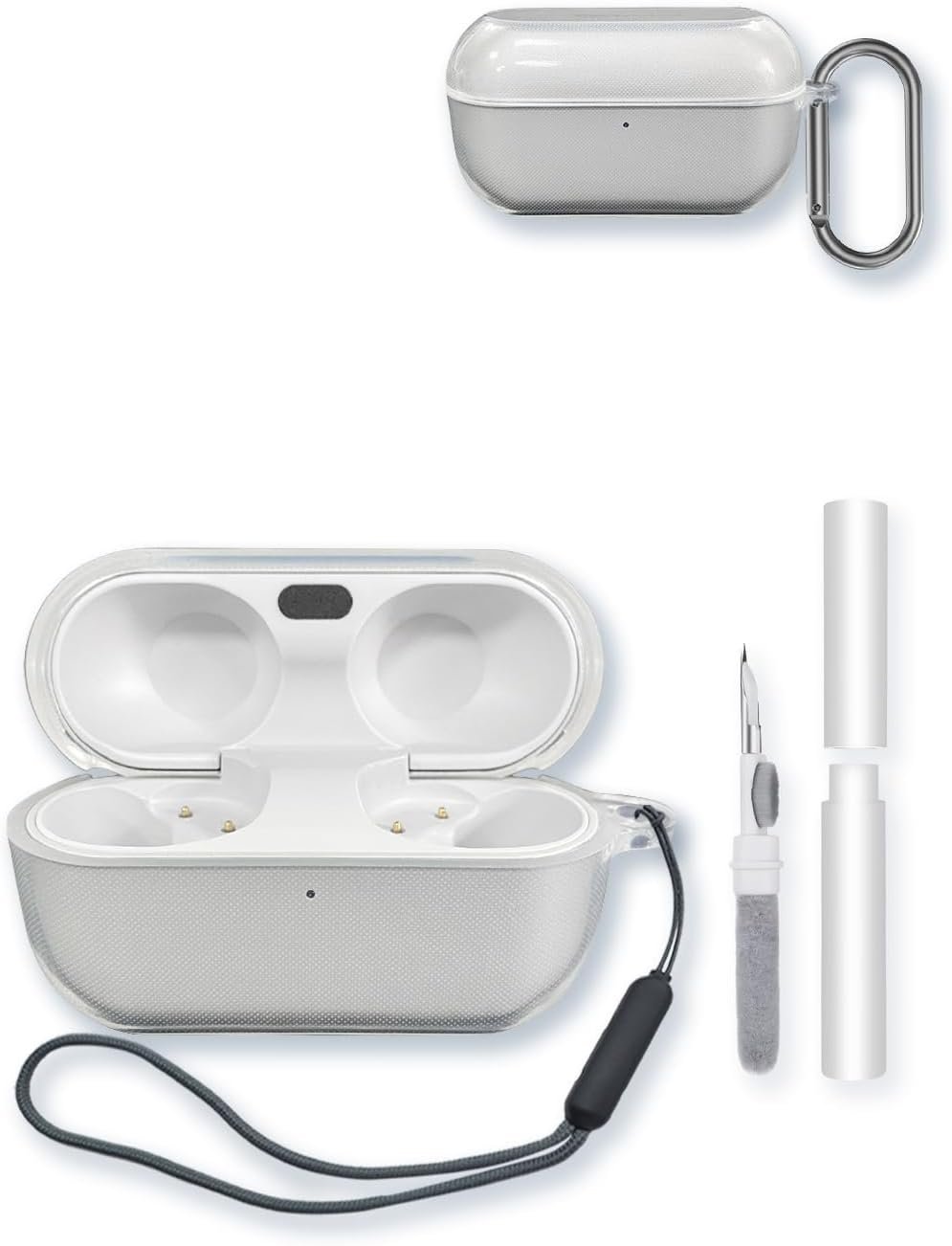 Case for Technics EAH-AZ100 Technics Reference Class Hi-Fi Wireless Earbuds,BOVUGAC High Transparency Soft TPU Shockproof Cover with Keychain,Cleaning Kit and Lanyard-Clear
