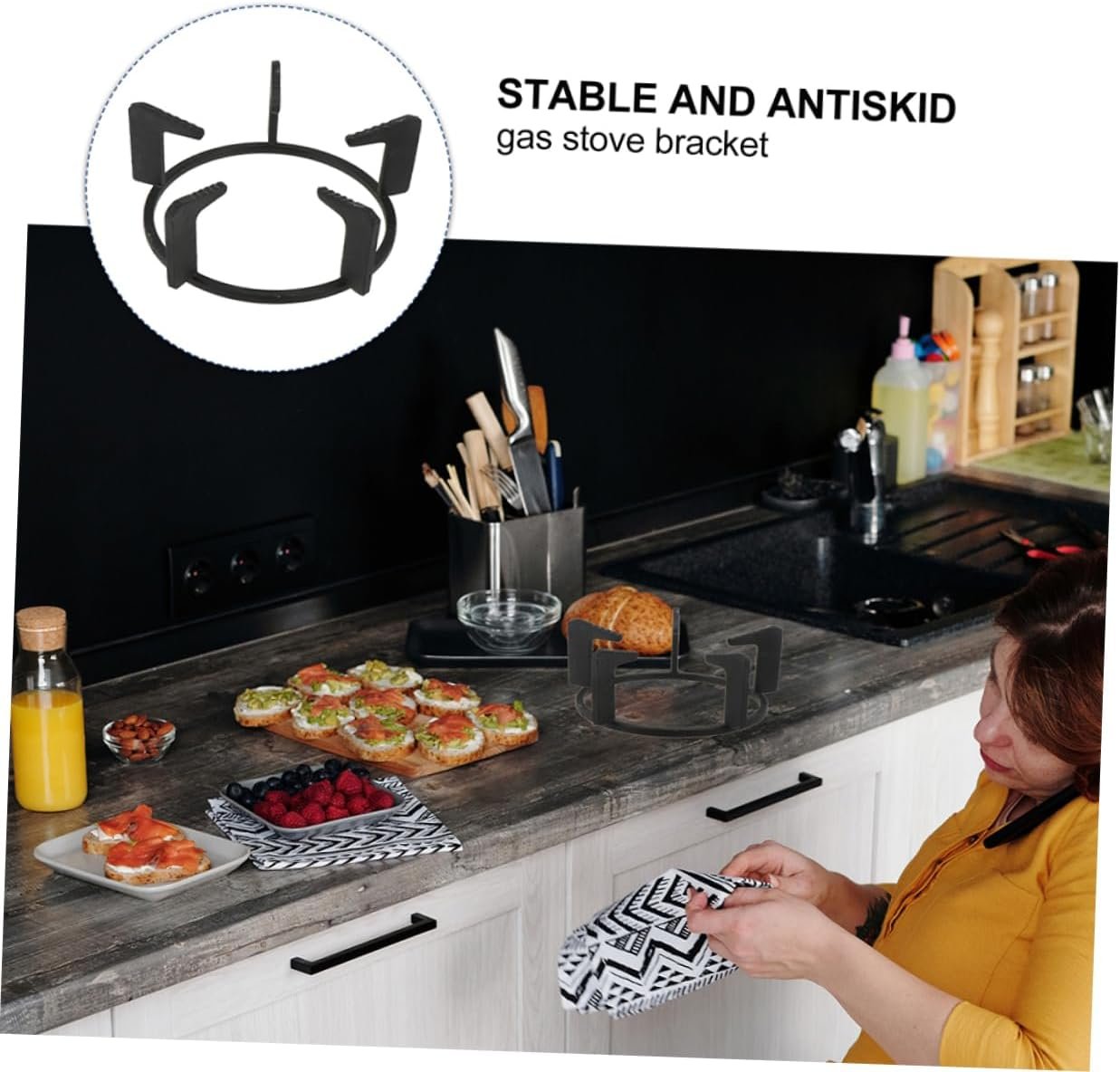 Wok support stand:the round work ring for gas stove can give stable support to avoid sliding around during cooking,gas stove wok holder