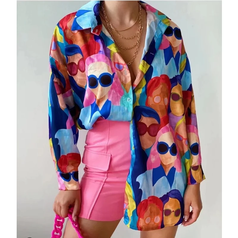 Casual Long Sleeve Turn Down Collar Blouse High Street Tops Fashion Loose Printed Shirt 2023 Women Clothes Blusas De Mujer 26054