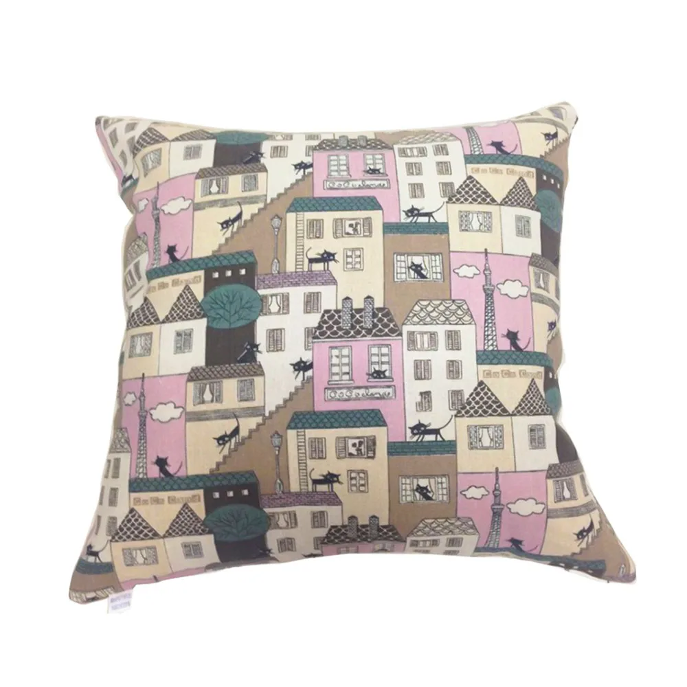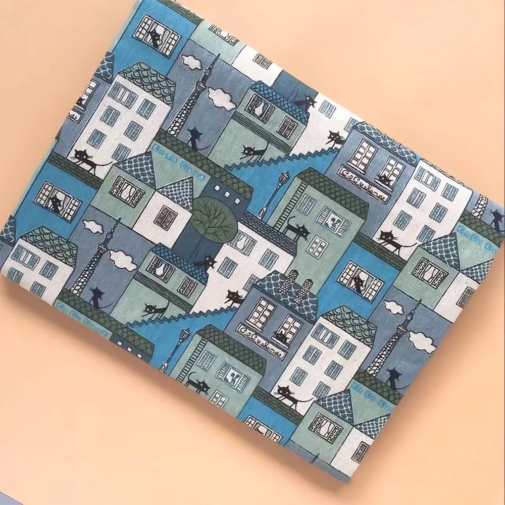 Cat And House Pattern Printed Cotton Linen Canvas Fabric For Sewing Retro Apparel Textile Decoration DIY Craft Cloth Accessories