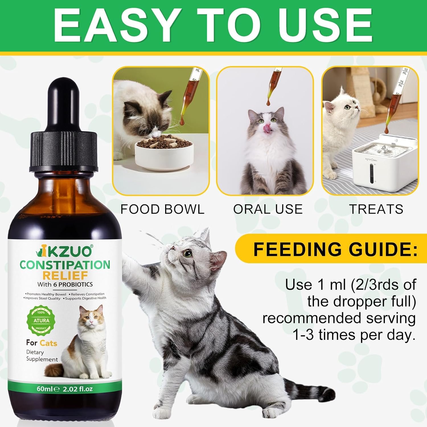 Includes 6 Beneficial Probiotics for Gut Health – We’ve included 6 powerful probiotics in our formula to support your cat’s gut health and overall digestive system. These probiotics work in harmony with the laxative to maintain a healthy balance of beneficial bacteria, helping to prevent future digestive issues and improve stool consistency.