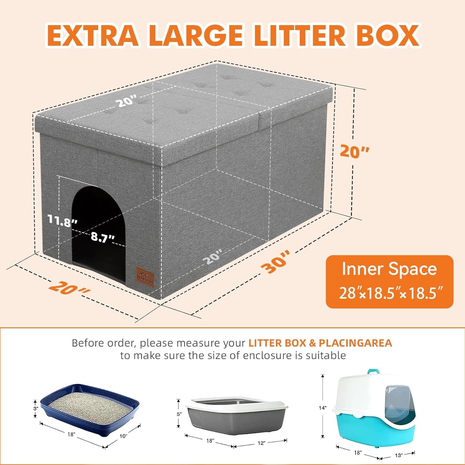 【Extra Large Space Inside】Measuring 30″x20″x20″, our cat litter box furniture ensures that the enclosure is spacious enough for your cat to comfortably enter, turn around, and dig in the litter without feeling cramped. All dimensions are measured manually, please allow a deviation of 1-2 inches.