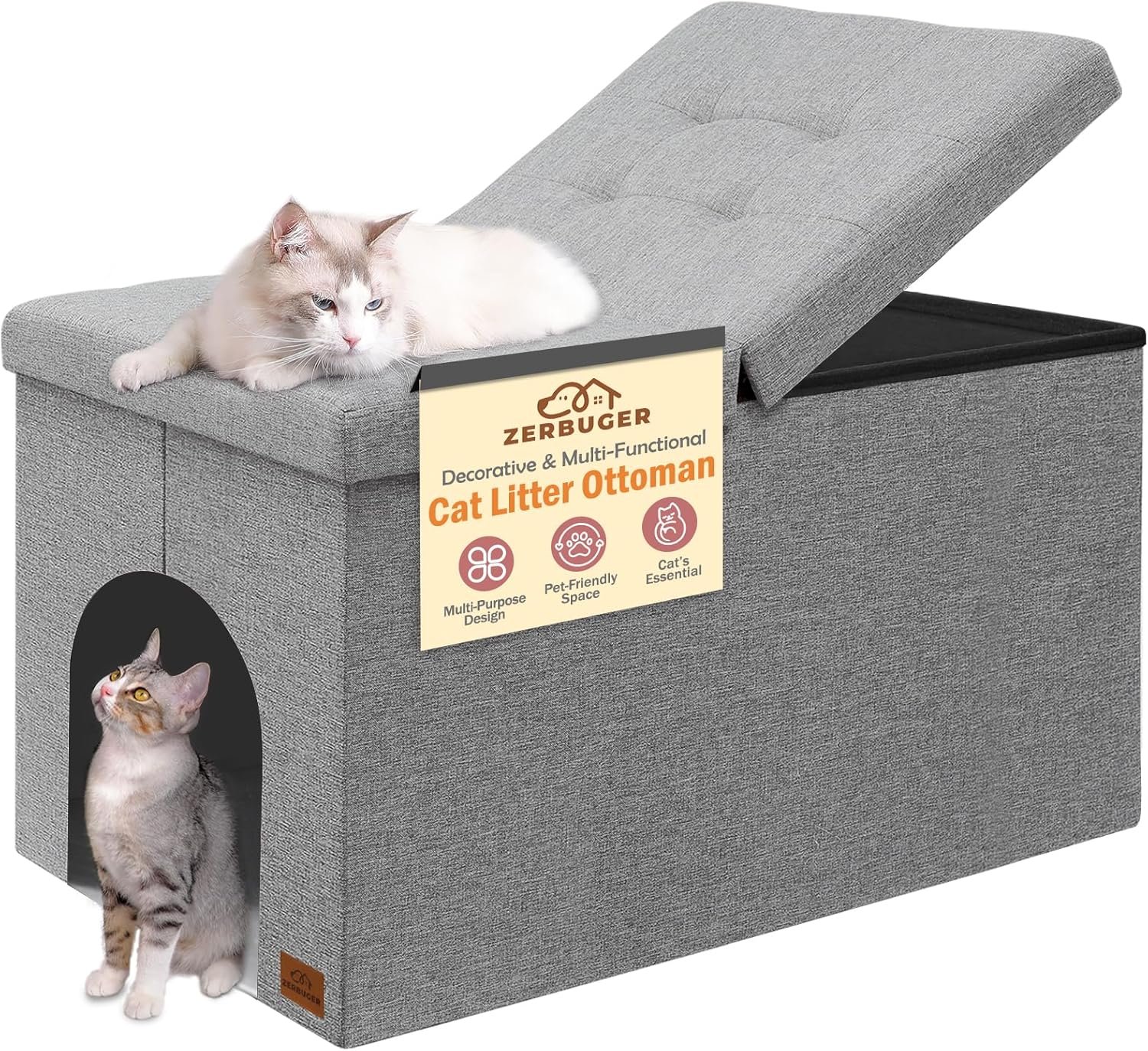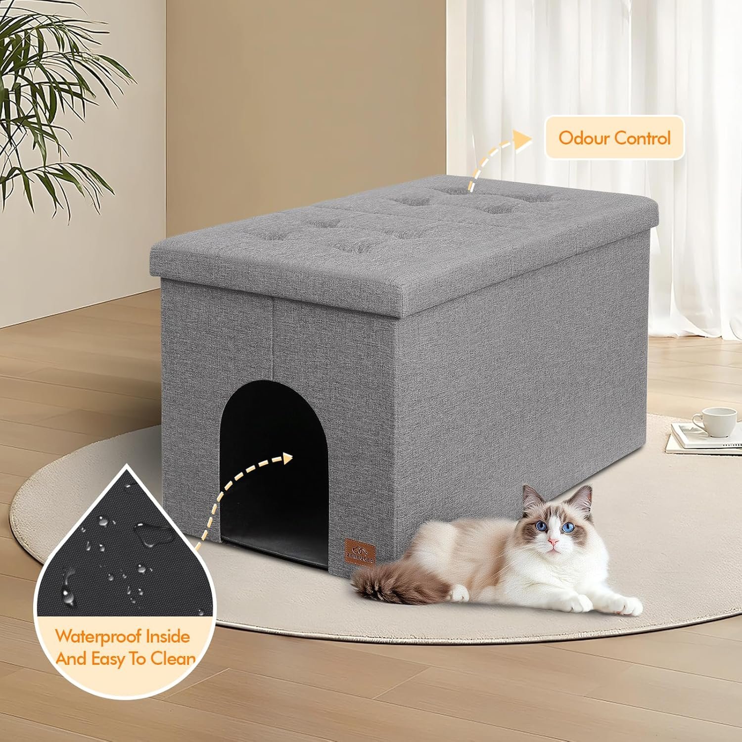 【Aesthetics Design】Not only is it a cat litter box enclosure, but it can also double as a cozy cat house. Plus, you can use this piece of furniture as a trendy ottoman or bench.