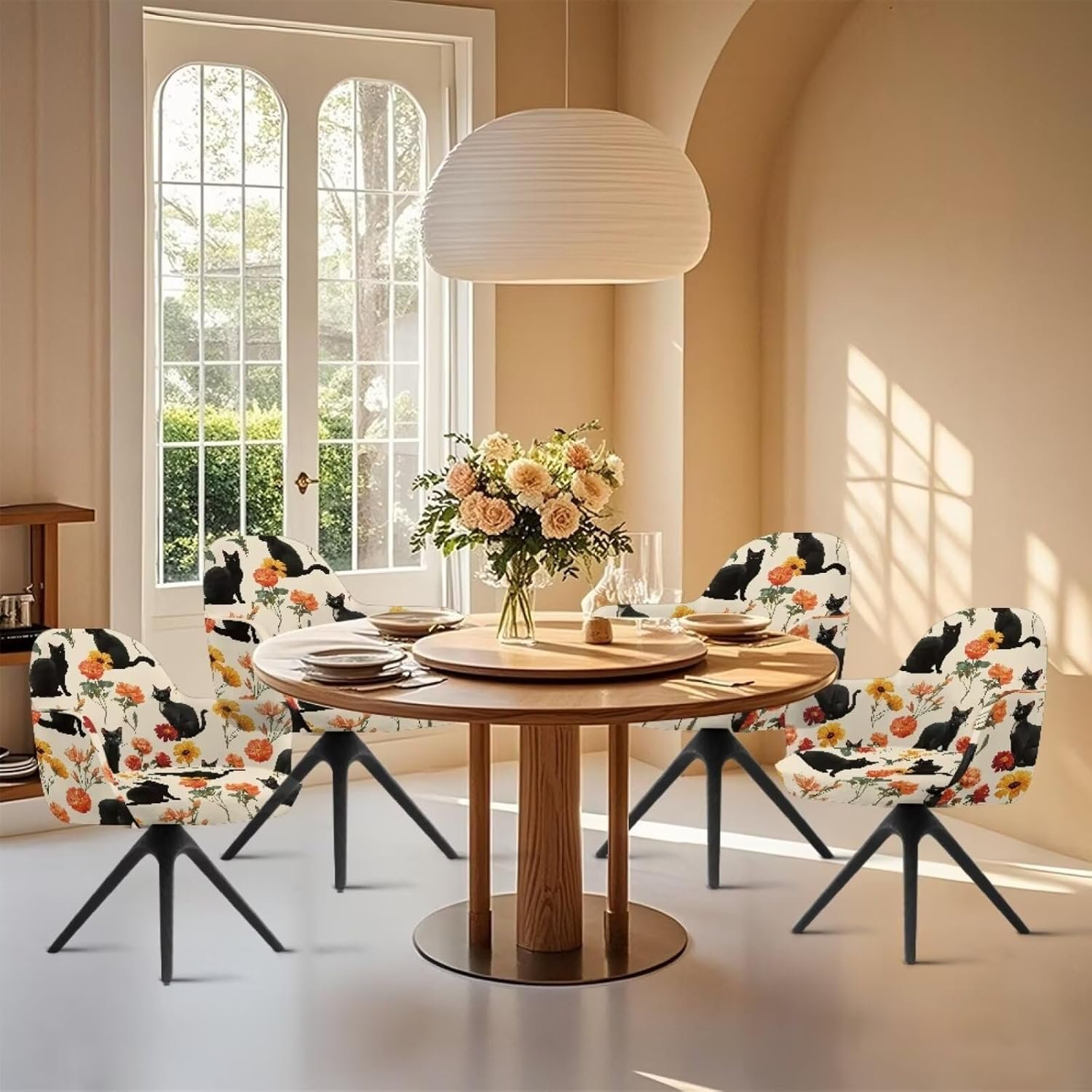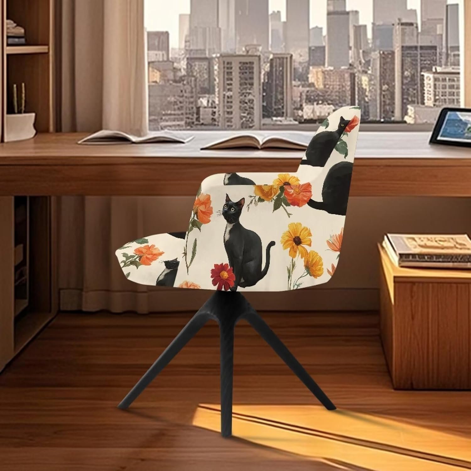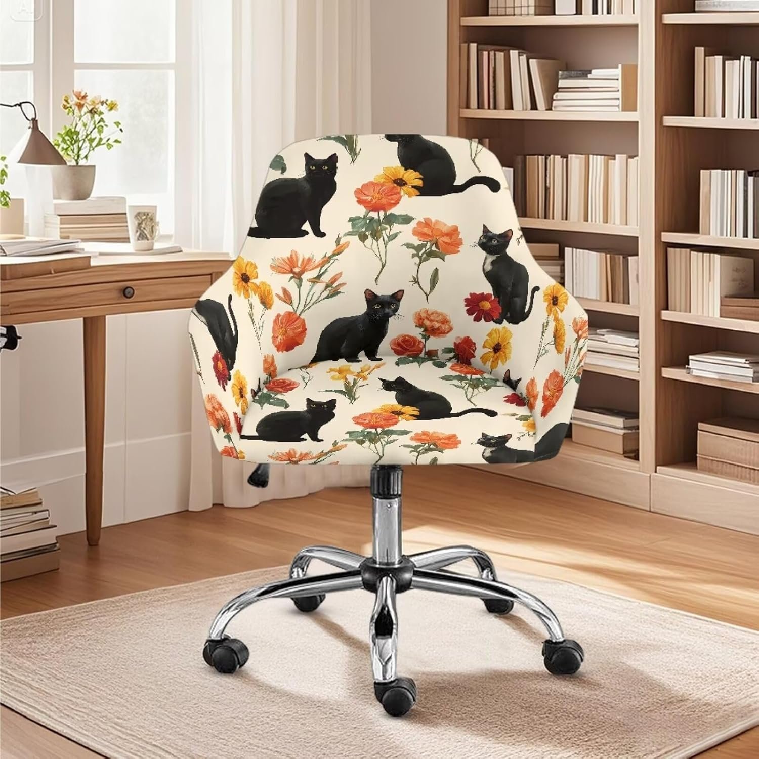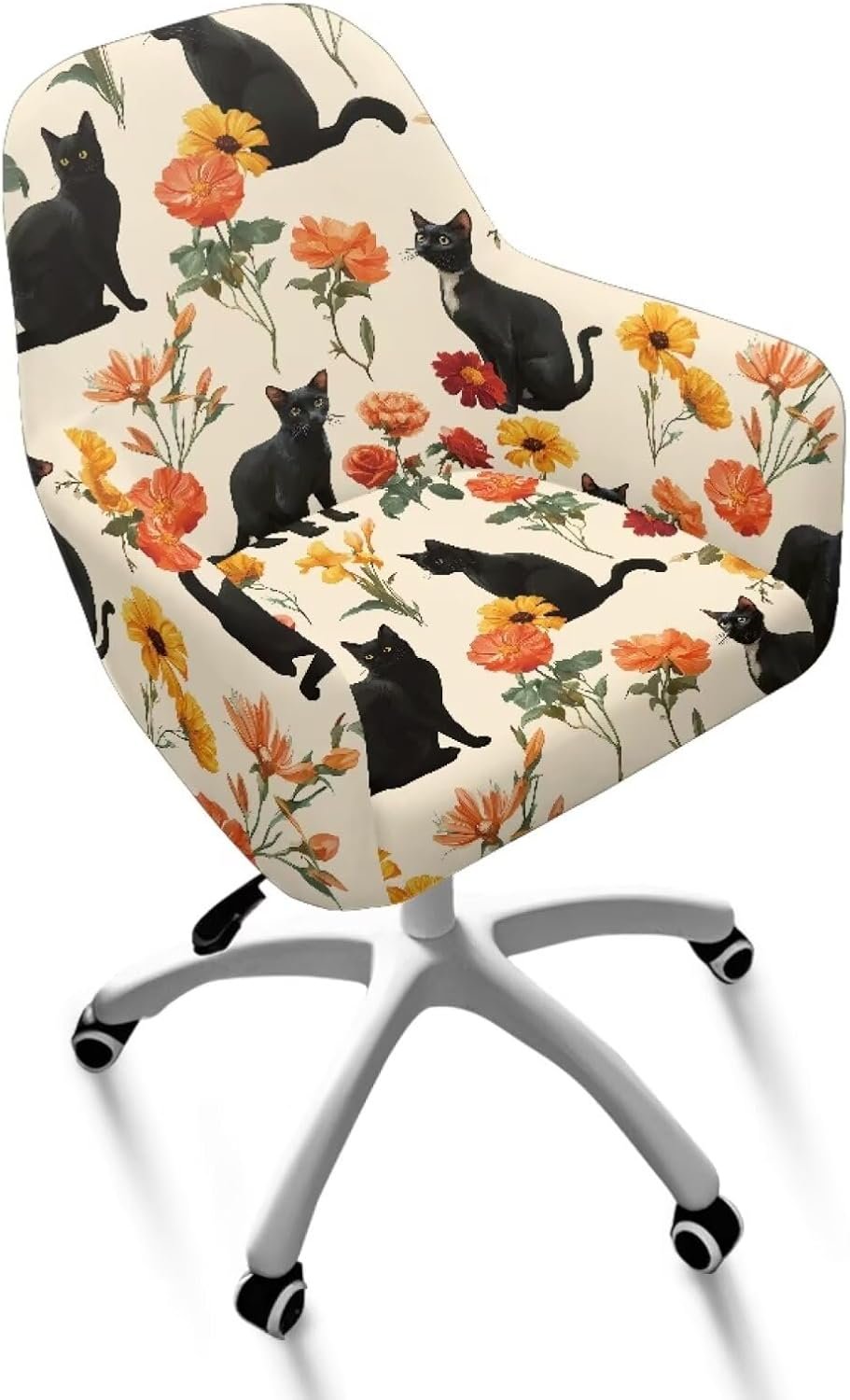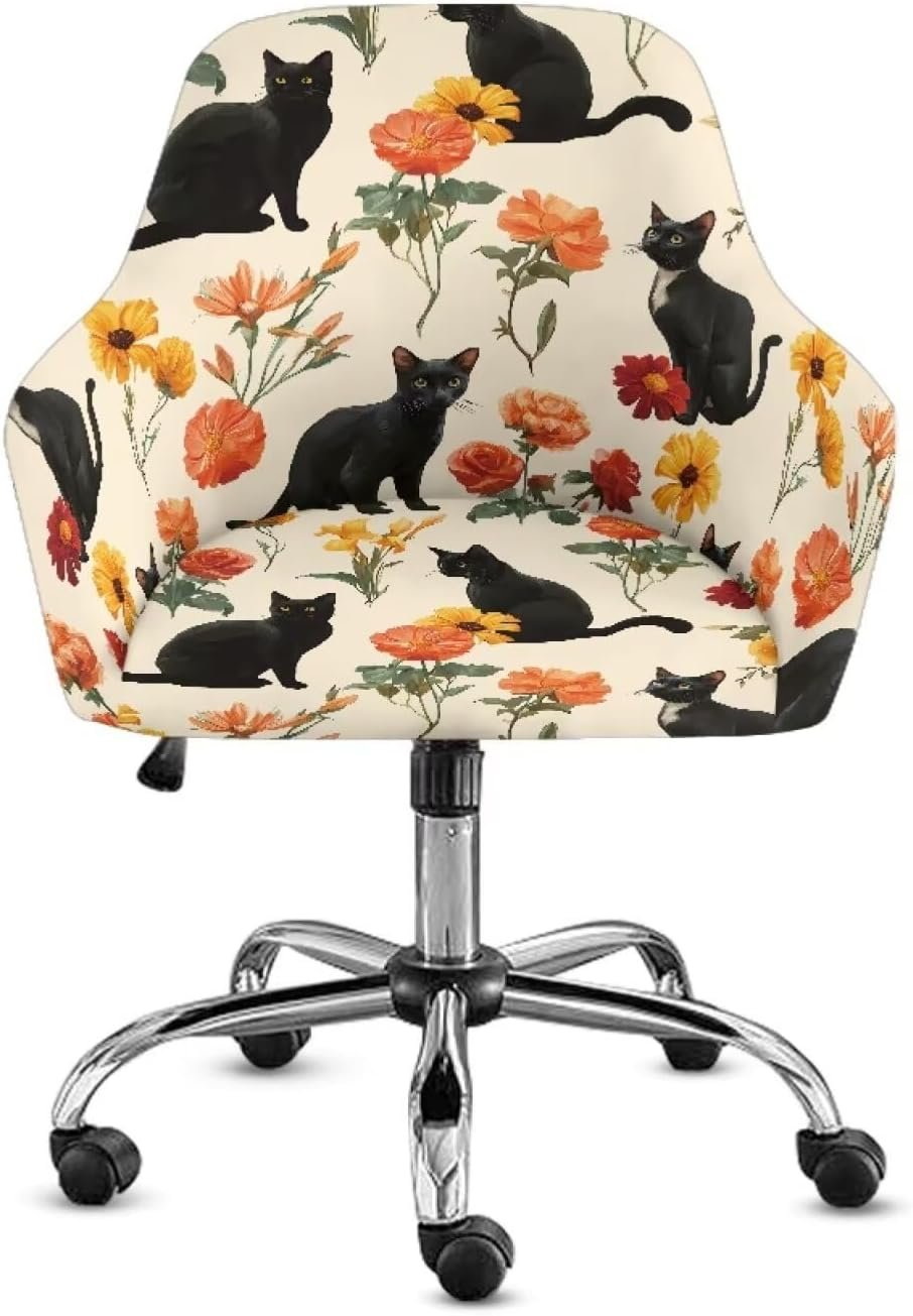Cat Sunflower Pattern Dining Chair Cover Elastic Swivel Armchair Accent Protector Mid-Back Office Desk Chairs Slipcovers for Vanity Living Room Bedroom