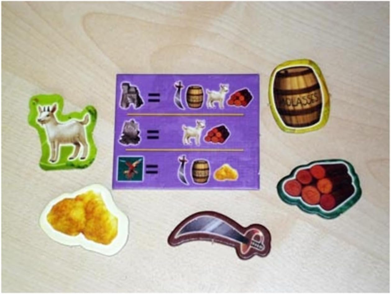 STRATEGY GAME FOR KIDS: CATAN Junior takes place on a ring of tropical isles—including the mysterious Spooky Island, home of the Ghost Captain. Each island generates a specific resource: wood, goats, molasses, or cutlasses. You can also find gold.
