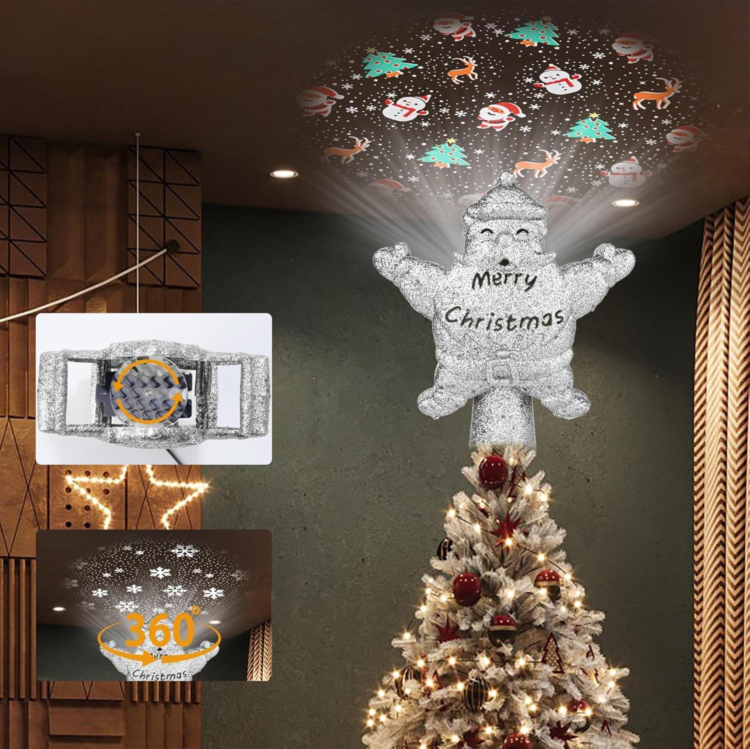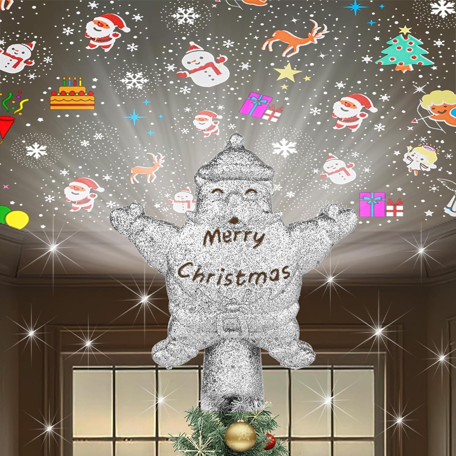 DIVERSE PROJECTION MODES:With 4 LED projection modes, this tree topper brings your tree to life. The rotating lighted star casts beautiful, festive patterns, making it a stunning Christmas decoration that everyone will admire.