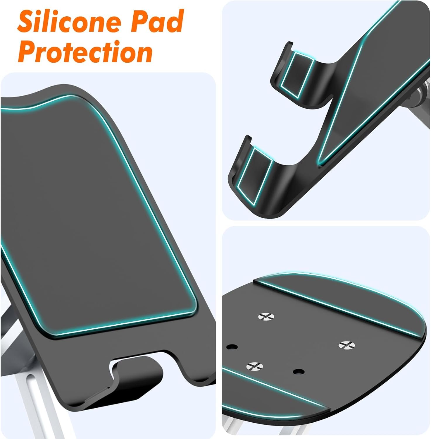 Sturdy Durable: We analyzed other competitors that had a lot of phone drop issues, so we upgraded our products. The use of high-cost material integrated design, all-metal alloy base, innovative adjustment locking mechanism, solve other first-generation flat bracket bracket instability and adjustment slip problems