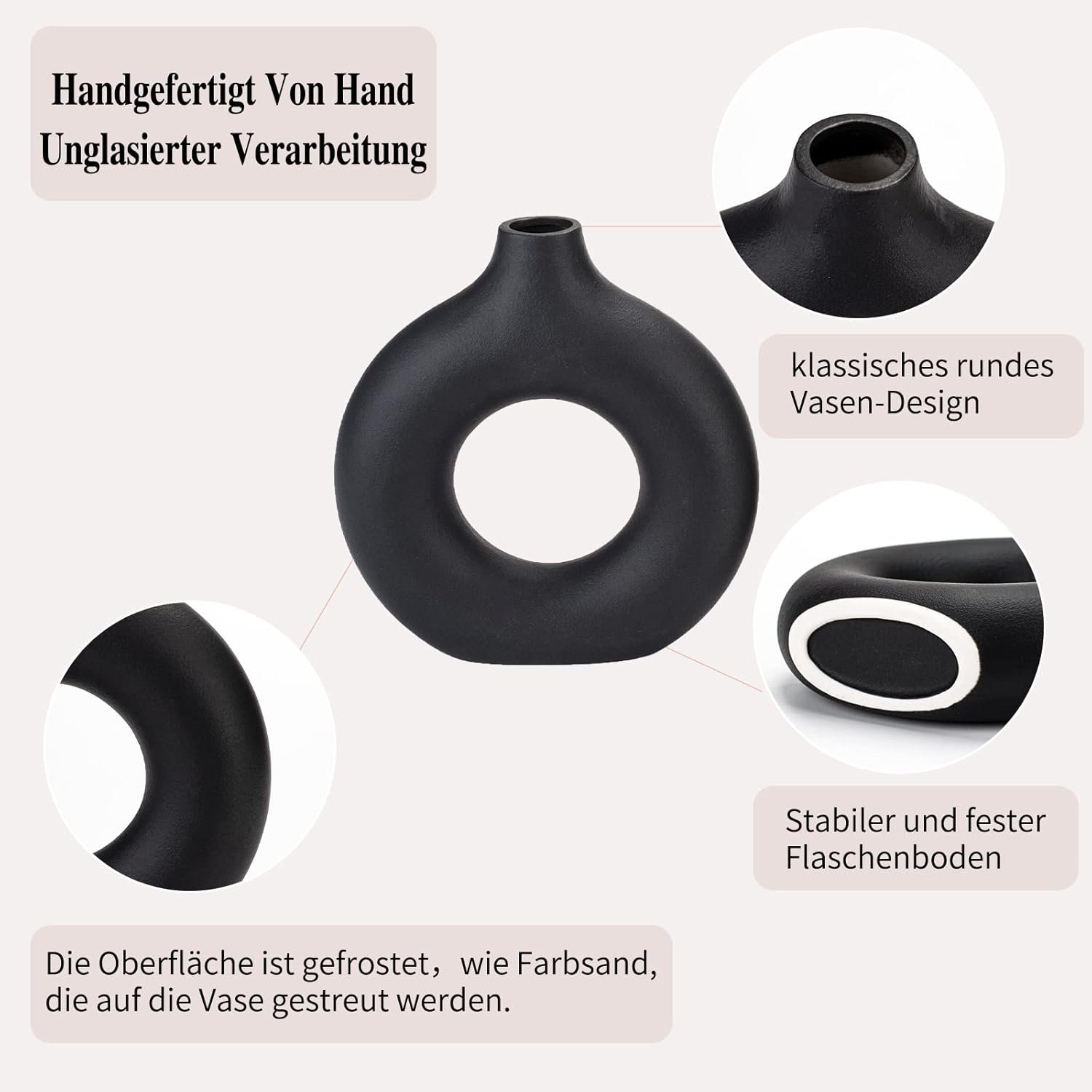 Donut Design: The decorative vase is designed with a unique donut shape that differs from the traditional vase. The hollowed out center makes it not only a flower vase, but also a work of art.