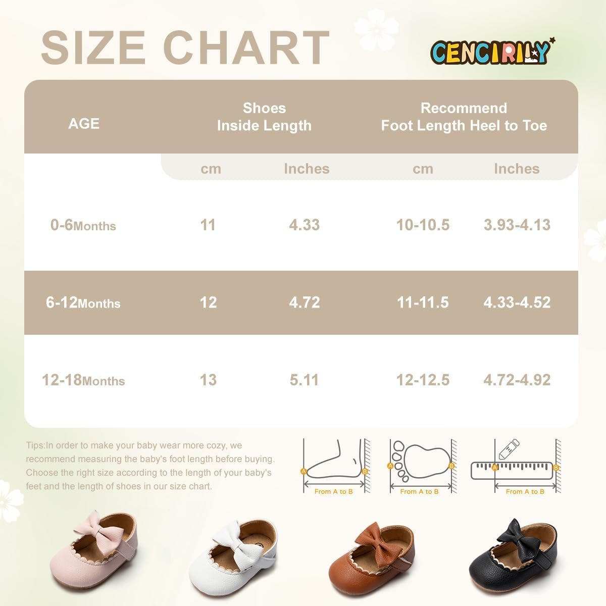 CENCIRILY Infant Baby Girls Mary Jane Flats Non Slip Soft Sole Prewalker Princess Wedding Dress Shoes