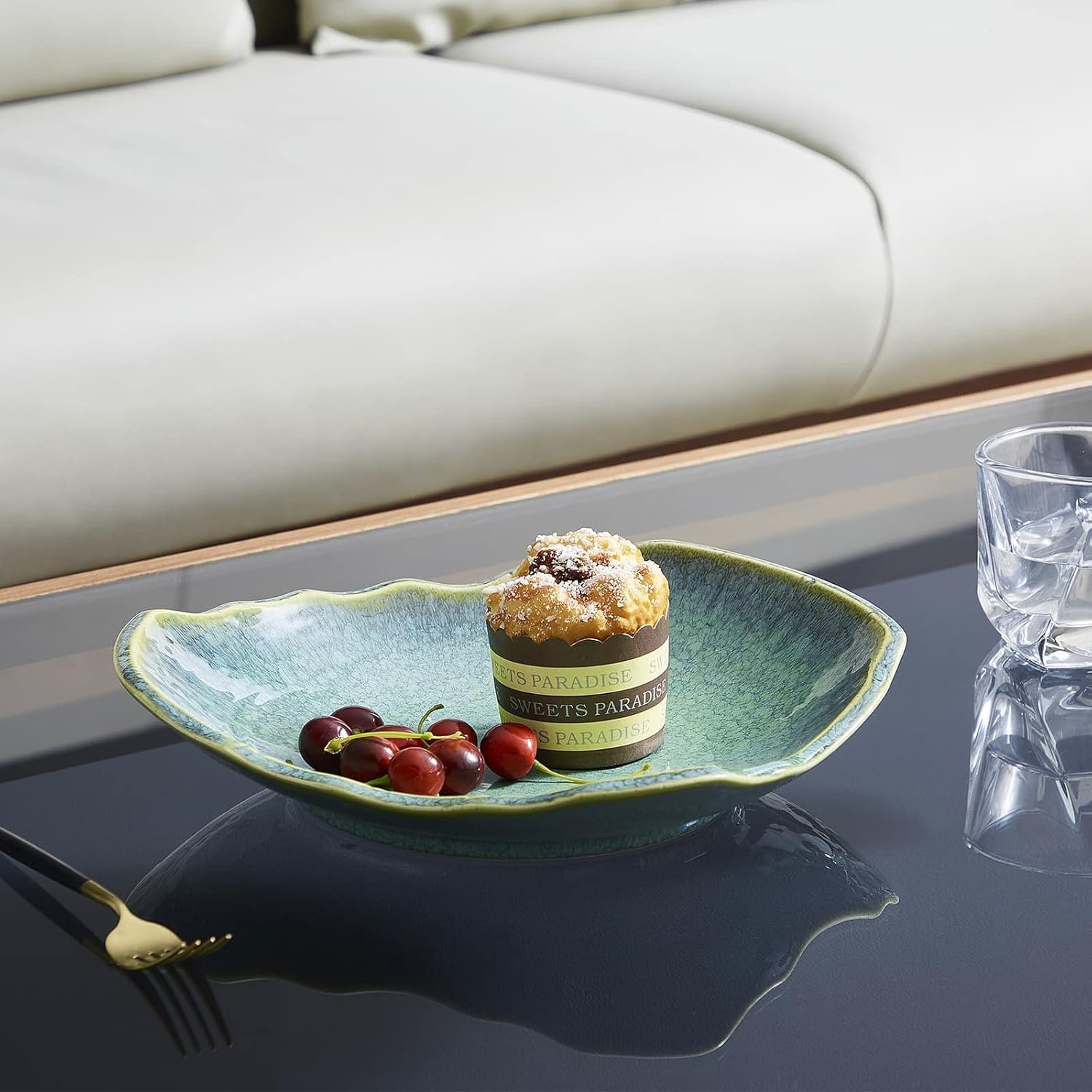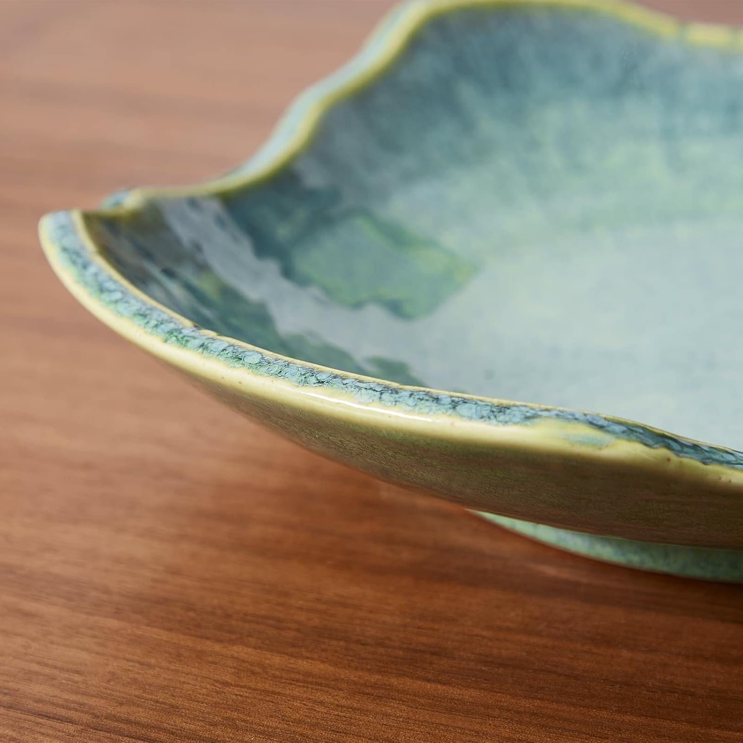 [Aesthetic Design] The Decorative Dish with irregular edge is a perfect artistic decro. The surface presents amazing emerald green reactive glaze color. The magical color glaze is full of fantasy of the nature and geometry. The irregular yellow edge is also the highlight of this decor.