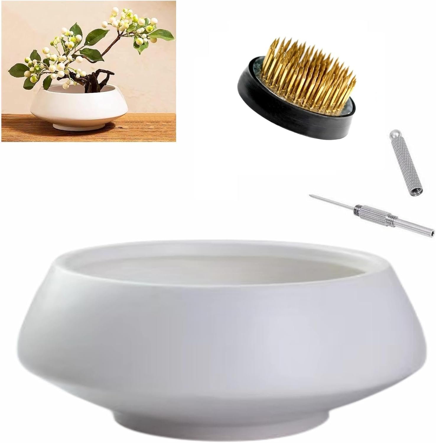 Ceramic Flower Pot Flower Arrangement Set Japanese Ikebana Floral Art Supplies Flower Bowl Decorative Flower Vase for Centerpieces (Medium White)