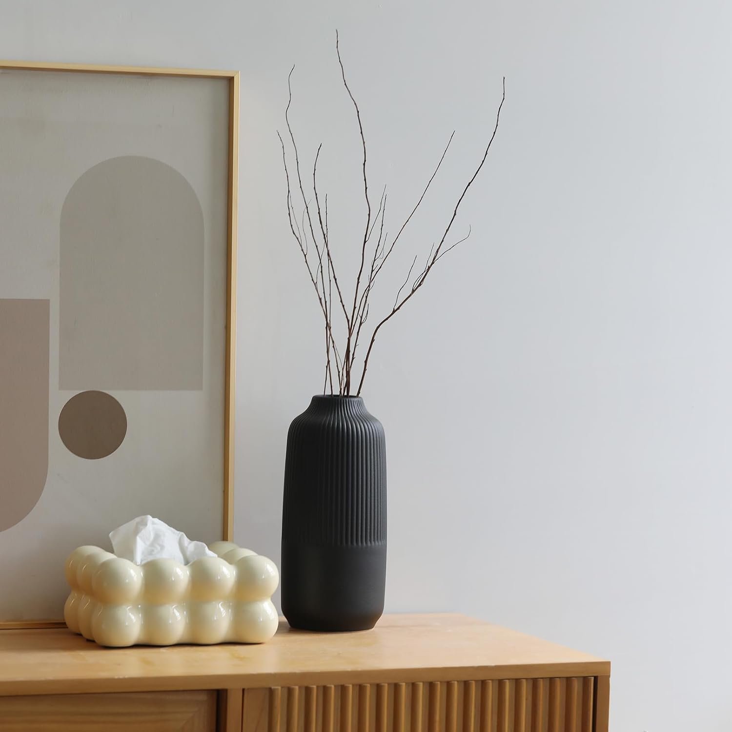 Original Minimalist Vase: designs by combining soft and smooth curves with parallel lines, the matte finish gives it a beautifully sculpted look, so this black vase suitable for all styles: classic, traditional, farmhouse or boho modern decor, create a pretty centerpiece