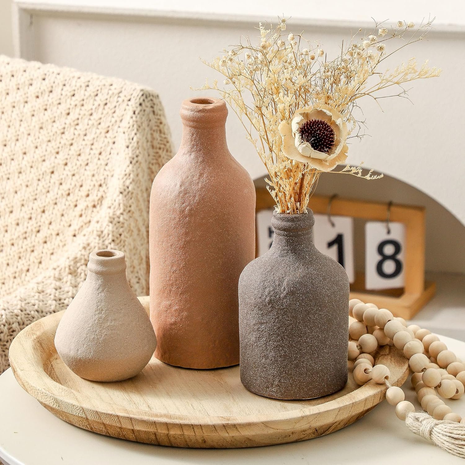 【For Multiple Home Décor Styles】Designed in a variety of shapes and sizes, this set of vases is the perfect home décor even without flowers. Whether your style is bohemian, modern farmhouse, rustic, or homey, they all fit in perfectly show off your lifestyle and decorative sense of style.