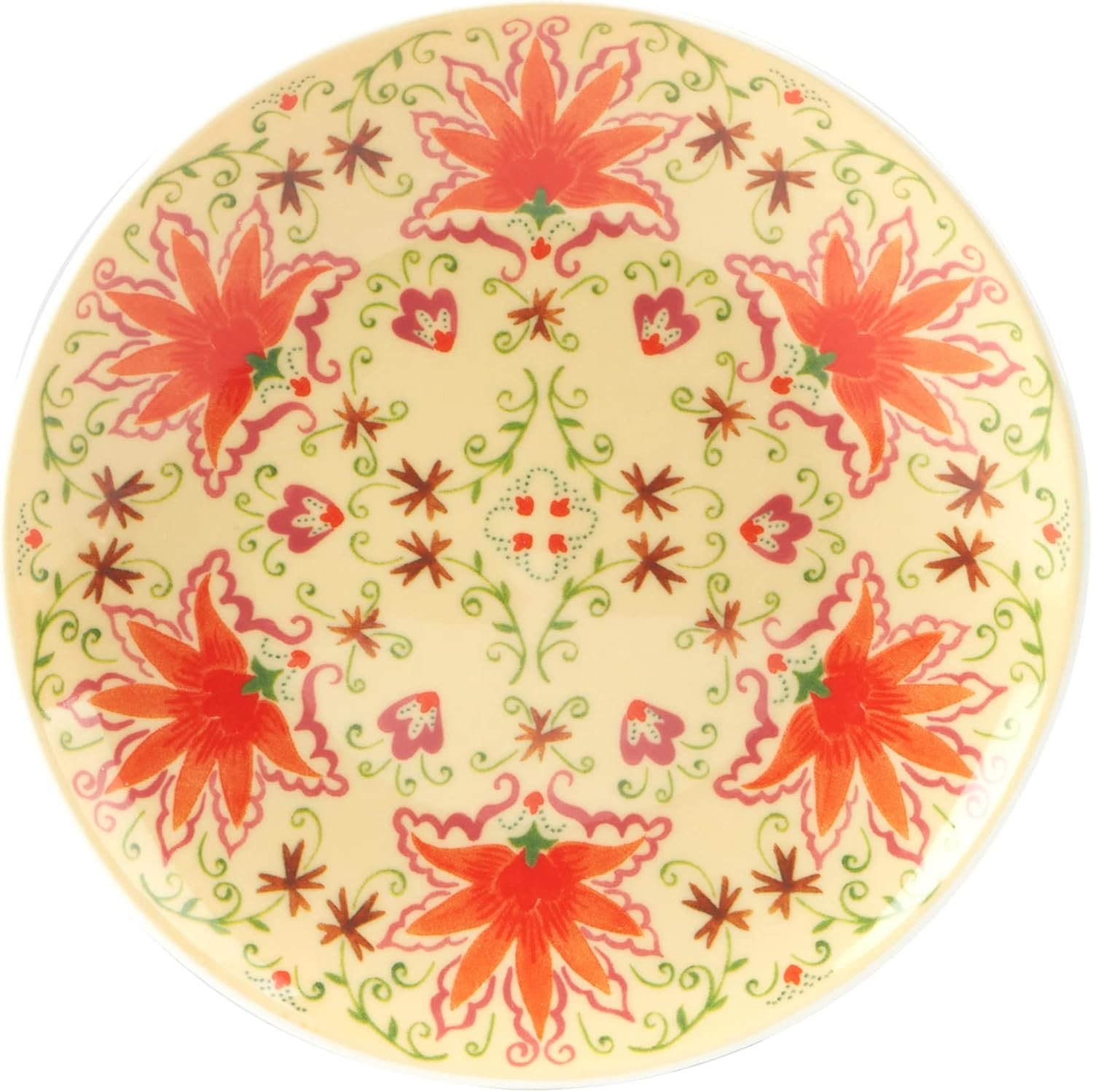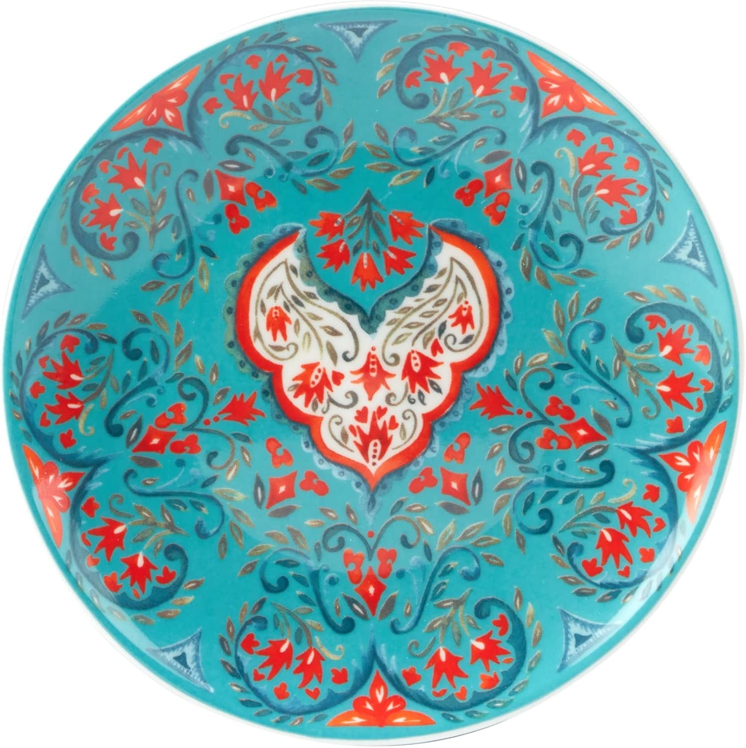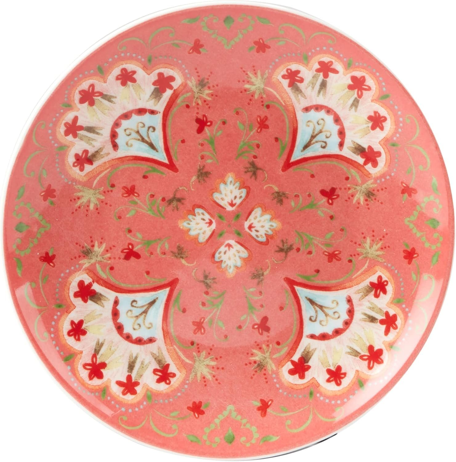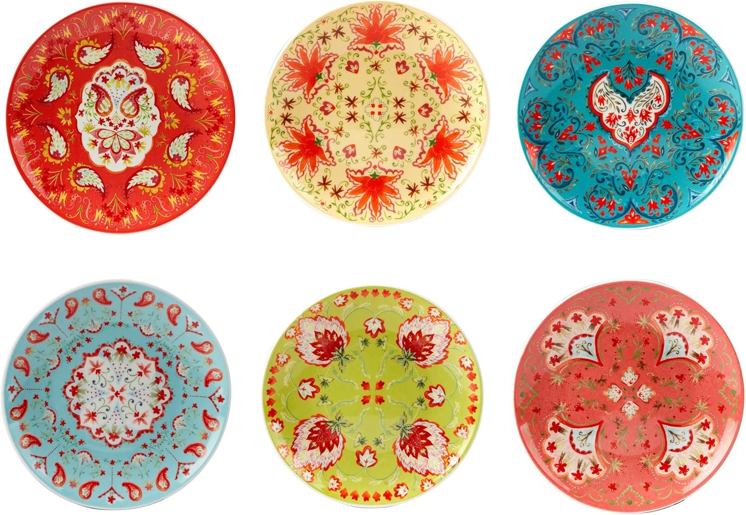 A COLORFUL SET OF SIX DESIGNS: With six unique patterns in bold reds, greens, teals, and yellows, each plate adds a splash of personality to your presentation. Inspired by floral textiles and Mediterranean motifs, they bring a joyful burst of creativity to bohemian, modern, or global-inspired table settings. Whether displayed or in use, these small plates turn everyday moments into something extraordinary.