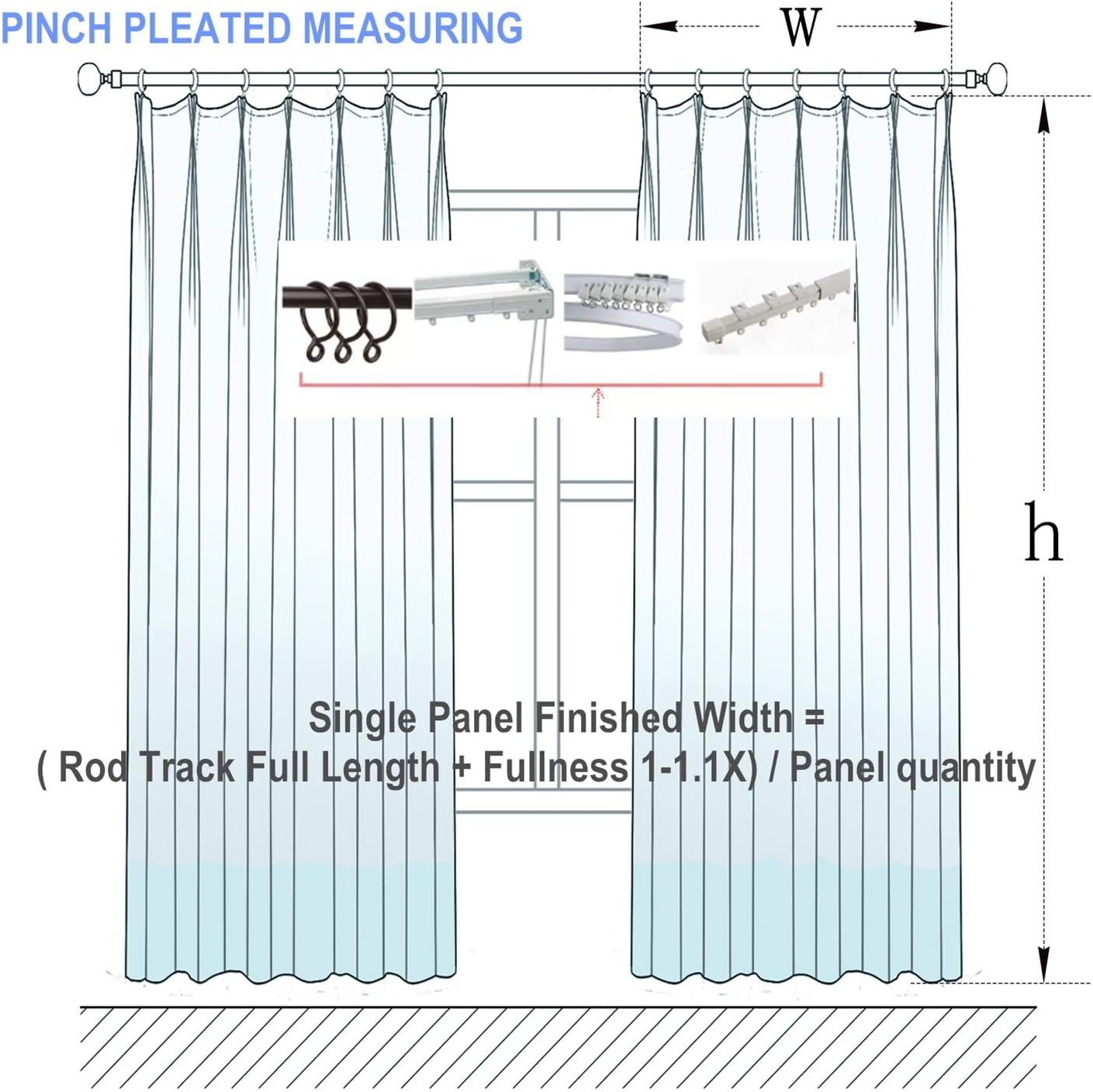 ✅【CURTAIN WIDTH】 Single panel width = ( Rod Track Full Length * Fullness ) / Panel quantity. For Example: if your rod, pole or track is 100″ wide, then for pinch pleat and goblet to order 2 panels of each 50-60″ width (1-1.2X Fullness); for grommet, flat hook and back tab to order 2 panels of each 75-100″ width (1.5-2X Fullness); for rod pocket to order 2 panels of each 50-75″ (1-1.5X Fullness).