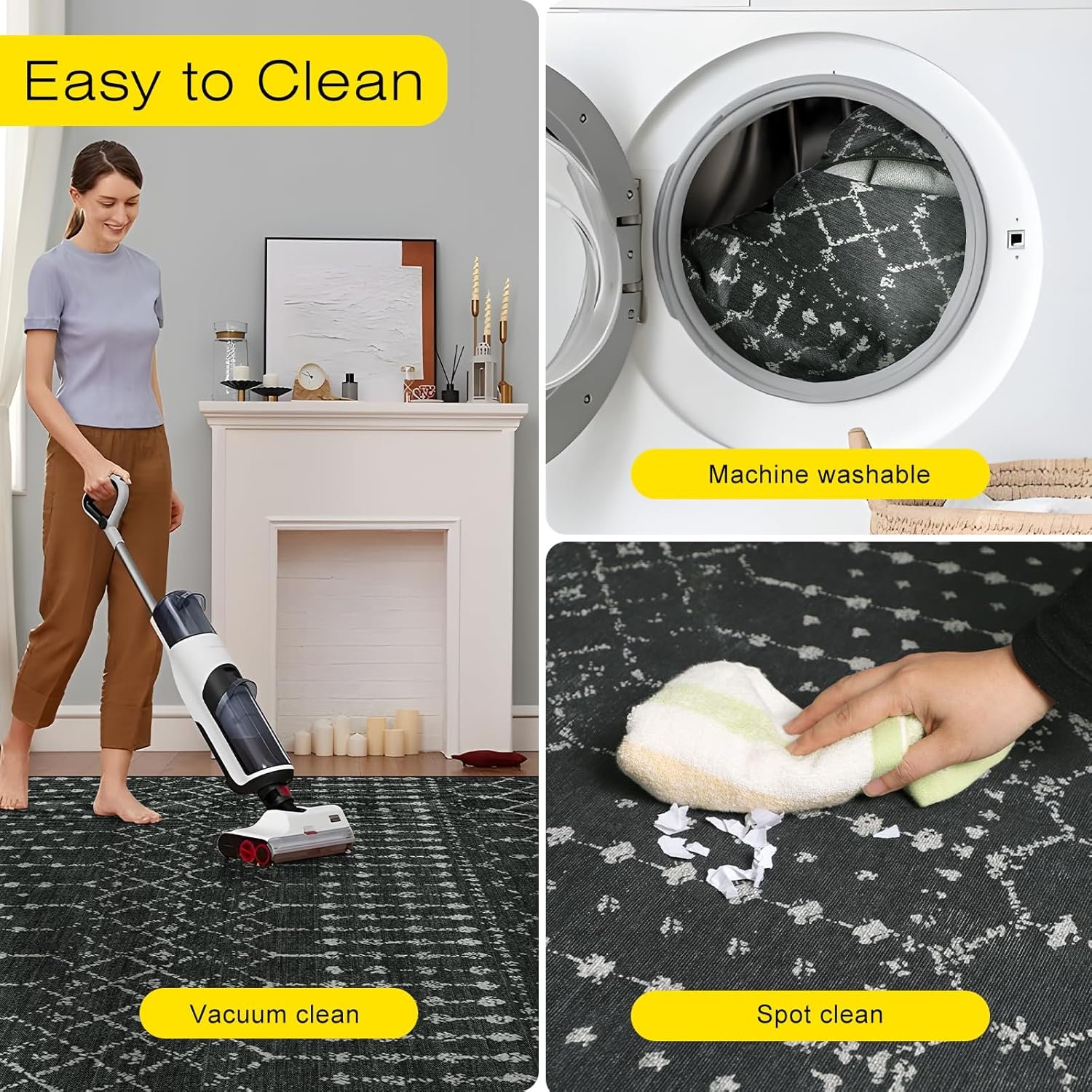 STYLISH BLACK PATTERN DESIGN: Our area rug features a classic black pattern, offering a modern and elegant touch that complements various home styles. Whether in the office, living room, or bedroom, it enhances the ambiance with sophistication.