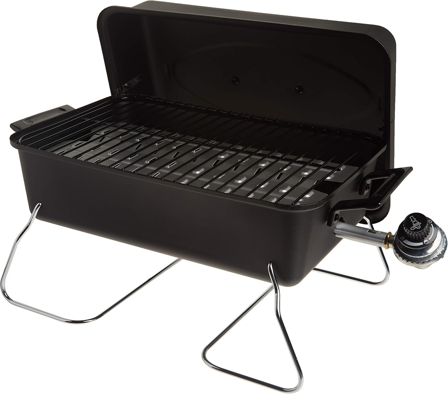 The Char-Broil® Portable Gas Grill is a great on-the-go grill for tailgating, beach parties and camping. Simply fold the legs over the top of the grill to lock the lid in place and take it along to enjoy grilled chicken, burgers, and brats hot-off-the-grill wherever you go. When you want an easy option for delicious grilled food you can take on the road, go with the Char-Broil® 1-Burner Portable Propane Gas Grill.
