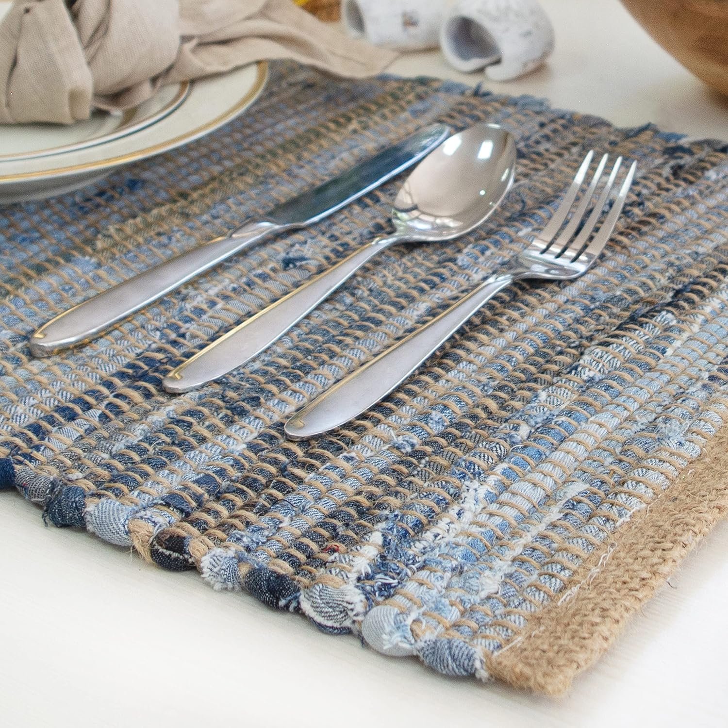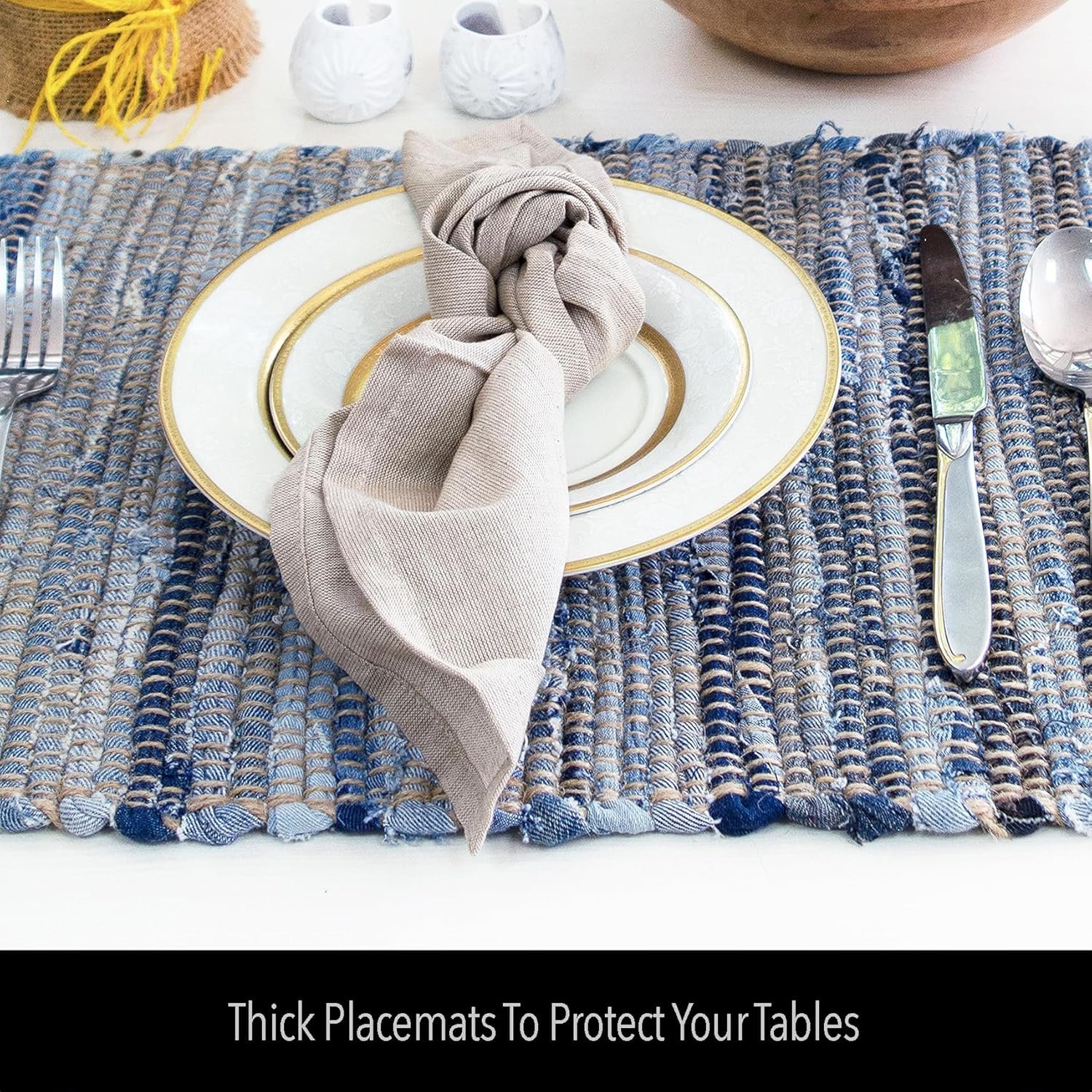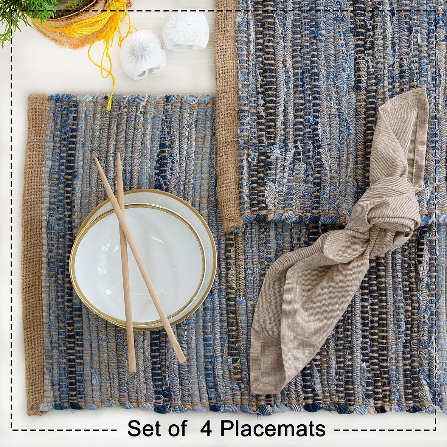 Chardin home Eco Friendly Denim/Jute Placemats (Set of 4), Size: 14”x19”. Rustic, Farmhouse, Boho Heavy Table mats Made with upcycled Denim and Natural Jute.