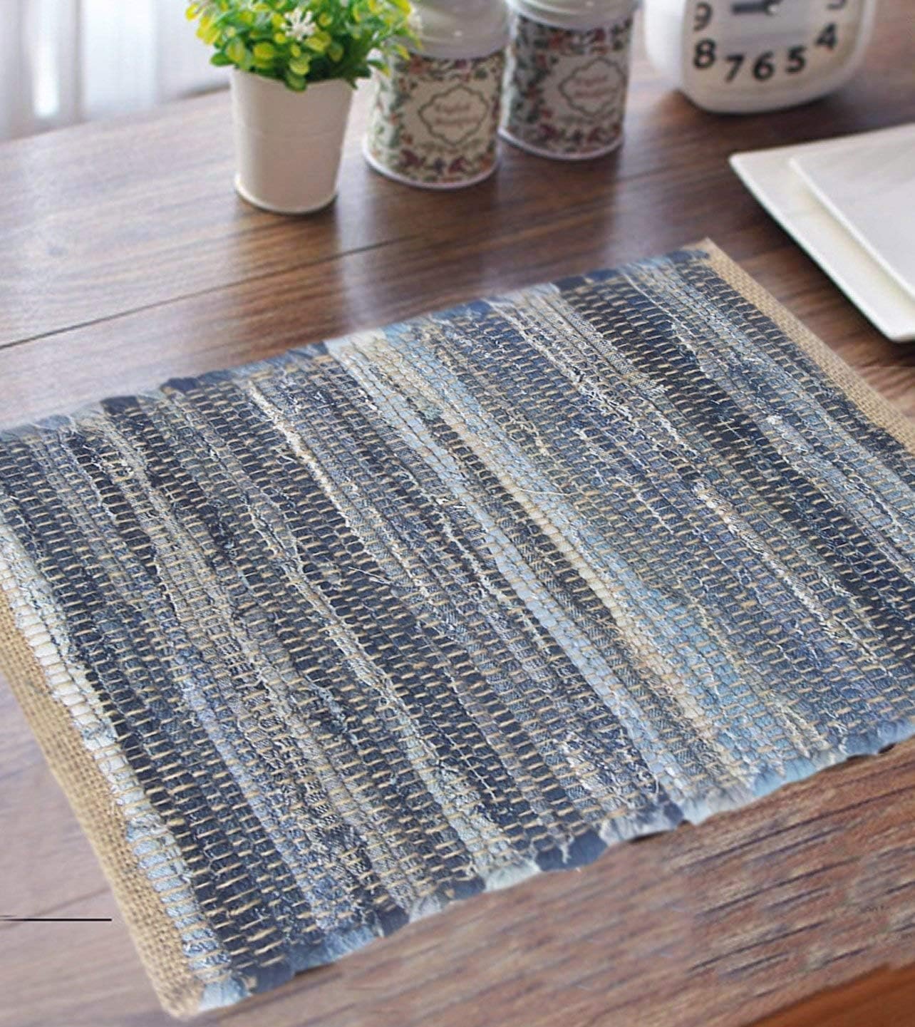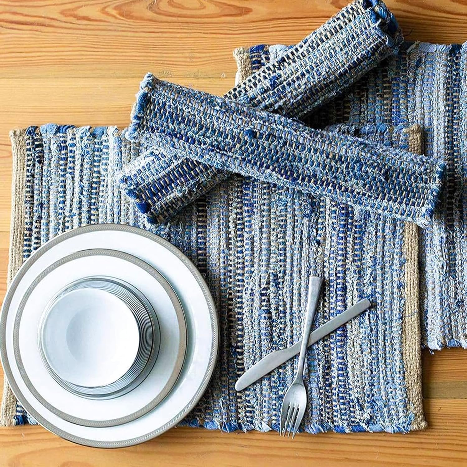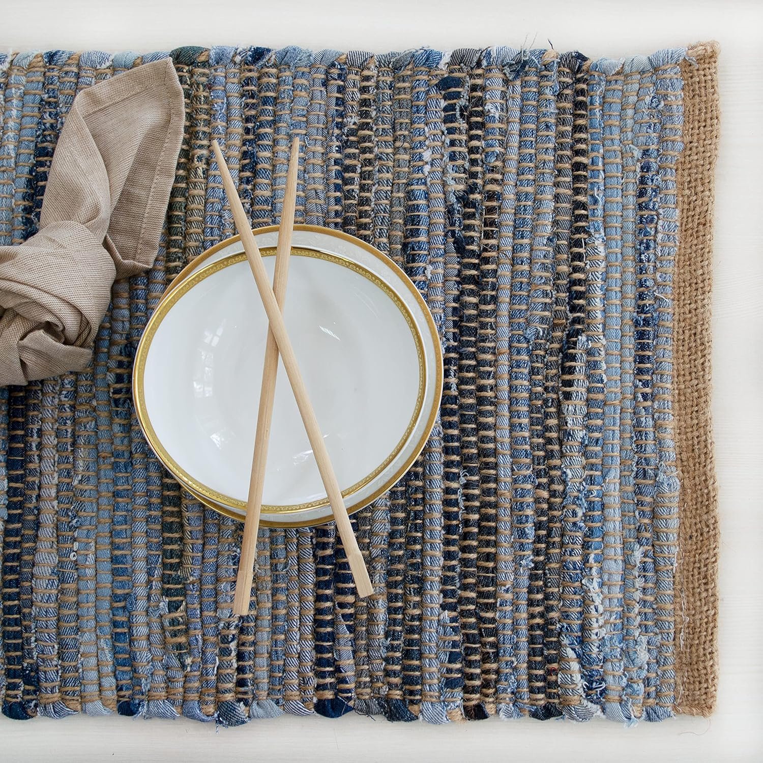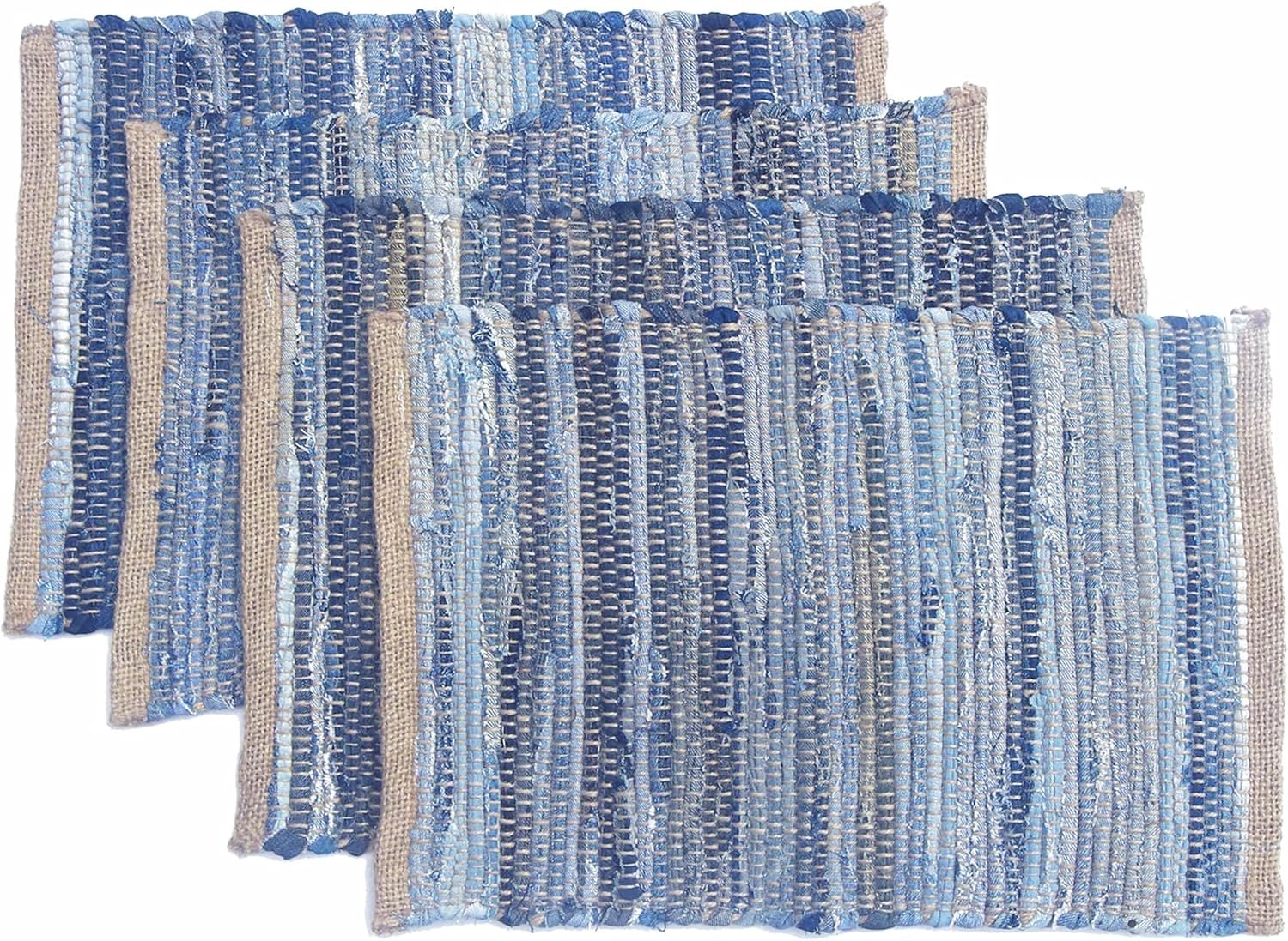 Chardin home Eco Friendly Denim/Jute Placemats (Set of 4), Size: 14”x19”. Rustic, Farmhouse, Boho Heavy Table mats Made with upcycled Denim and Natural Jute.