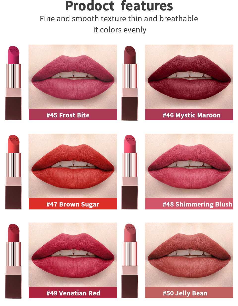 CHARMACY Waterproof Durable Easy To Wear Lipstick Natural Matte Red Velvet Lip Stick Lip Coloring Makeup Women Beauty Cosmetics
