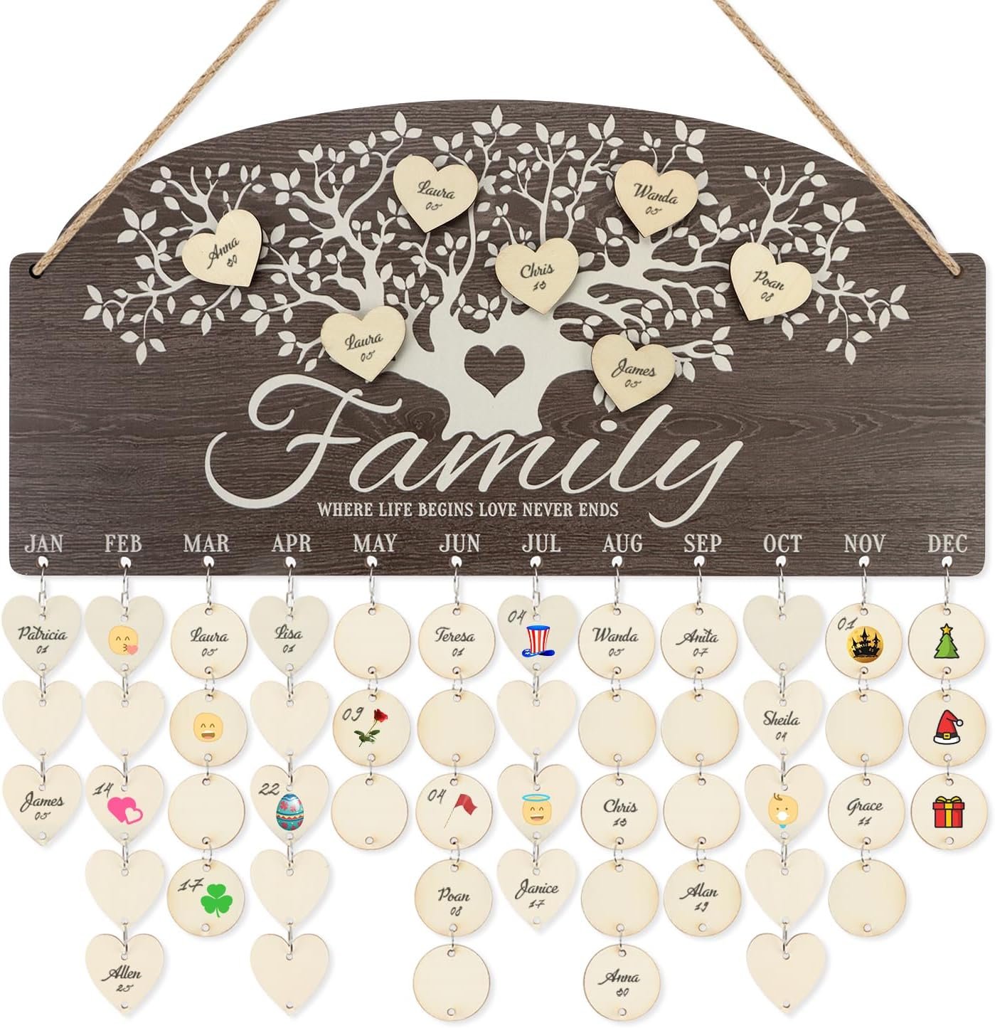 A Warm Tool to Remind Birthdays and Anniversaries——Just add the name and date on each tag then hang it! You will not forget and miss any family or friends birthdays, celebrations, anniversaries and some special days again.
