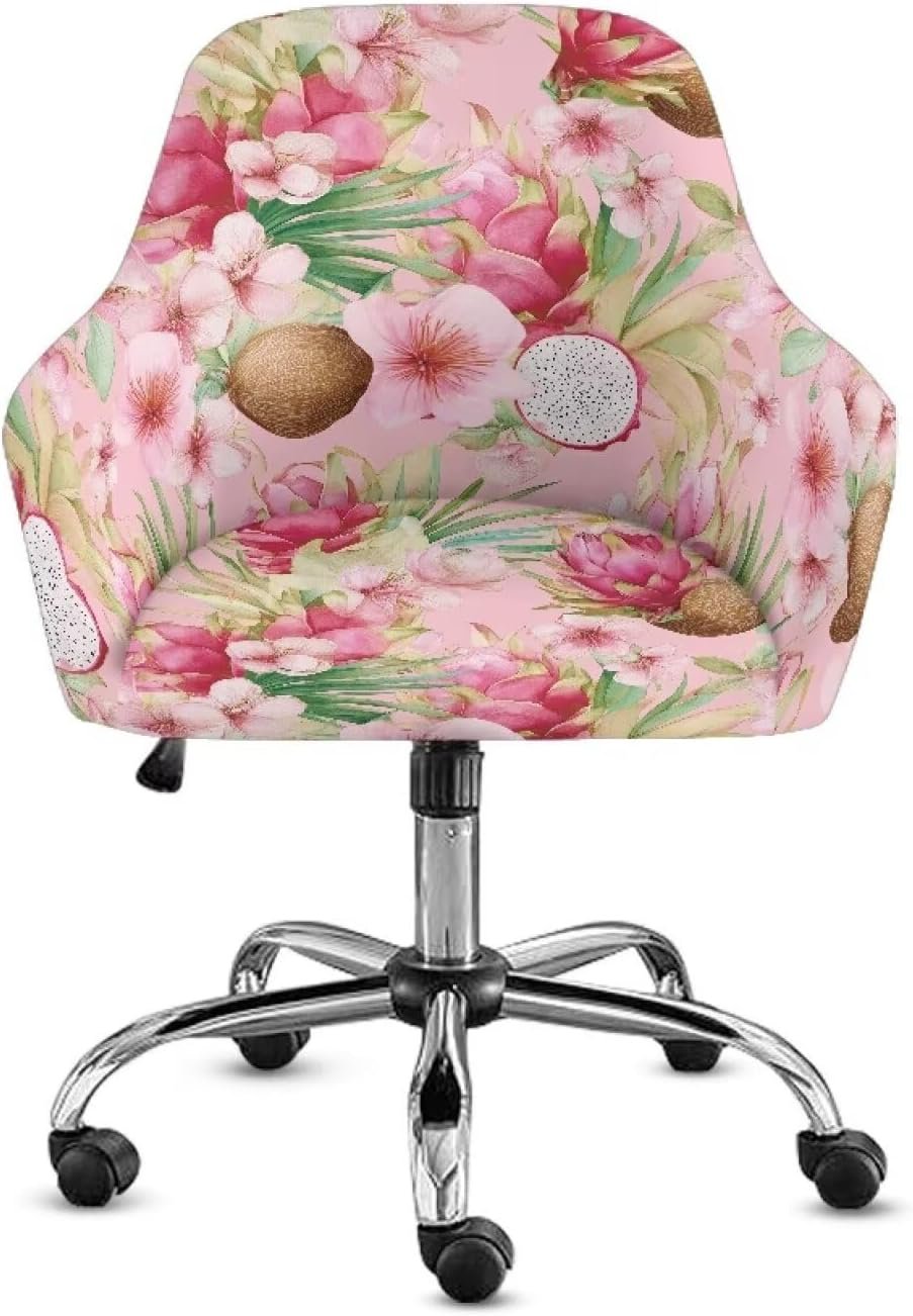 Cherry Blossom Pitaya Print Dining Chair Cover, Stretch Criss Cross Chairs Cover Dustproof Mid Back Wide Seat Accent Armchair Protector for Computer Vanity